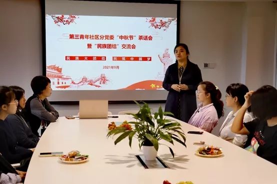 为深入学习习近平总书记在中央民族工作会议上的重要讲话精神,进一步促进民族团结进步,大力弘扬中华优秀文化,2021年9月26日第一青年社区分党委开展了“民族团结一家亲”座谈会,第一青年社区分党委书记范贞静、副书...
