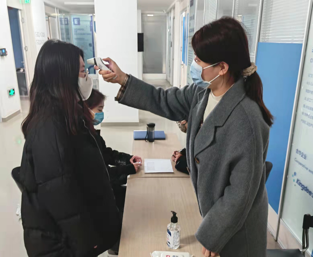 (图五)张超洁老师在给考生测量体温