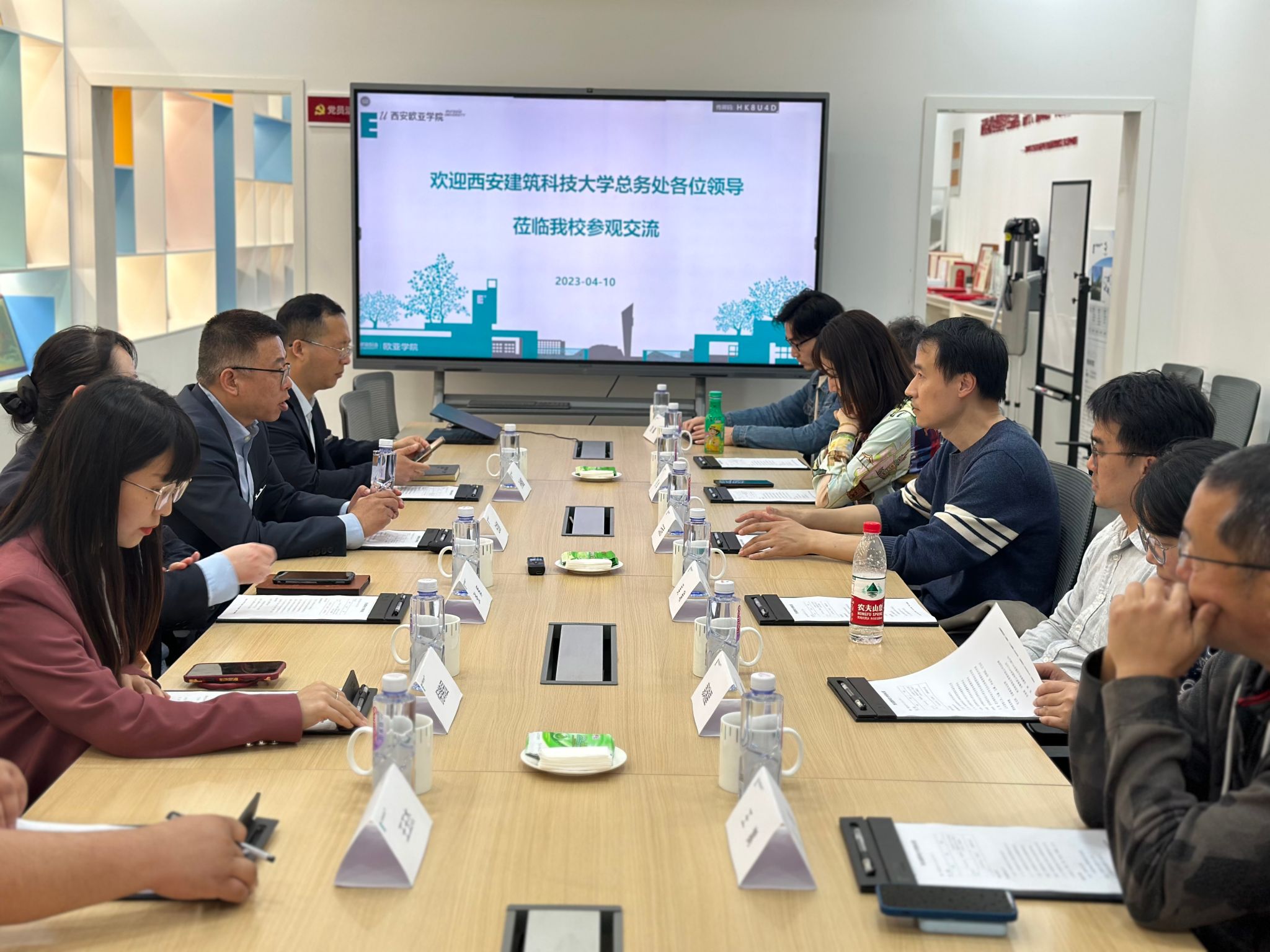 4月10日下午,西安建筑科技大学总务处副处长王运思一行9人前来beat365参访交流,beat365后勤集团总经理任龙刚、公共服务中心主任孙俊超、生活服务中心副主任张辉陪同接待。