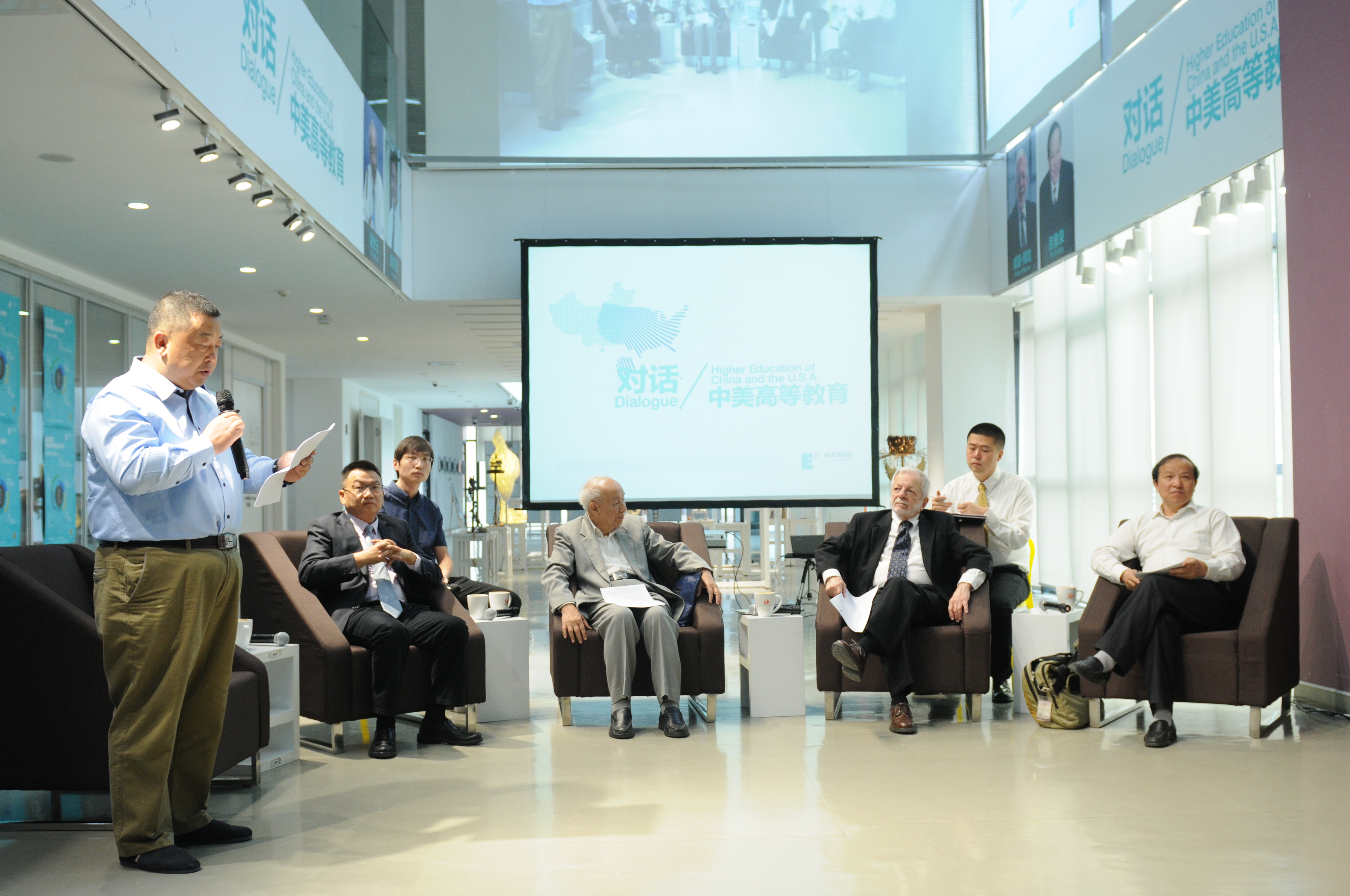 2015年5月,先生与别敦荣教授率领厦门大学博士调研团再赴欧亚学院考察,当时恰逢美国杜肯大学原教育学院院长博隆(William P.Barone)教授也正在欧亚学院开展教师培训工作,我们就借机举办了一场“中美高等教育对话”。先生认真倾听了博隆教授的报告和我的汇报之后,开篇就说,“今天不是什么中美高等教育的对话,我是来学习的,学习和了解欧亚学院的办学经验,学习博隆教授在欧亚学院开展教师发展工作的理论与方法。”他的这席话完全出乎我和现场听众的预料,话音未落,就赢得了全场的掌声。论坛嘉宾和师生当场领略了著名学者的谦逊,终身学习者的风范。
