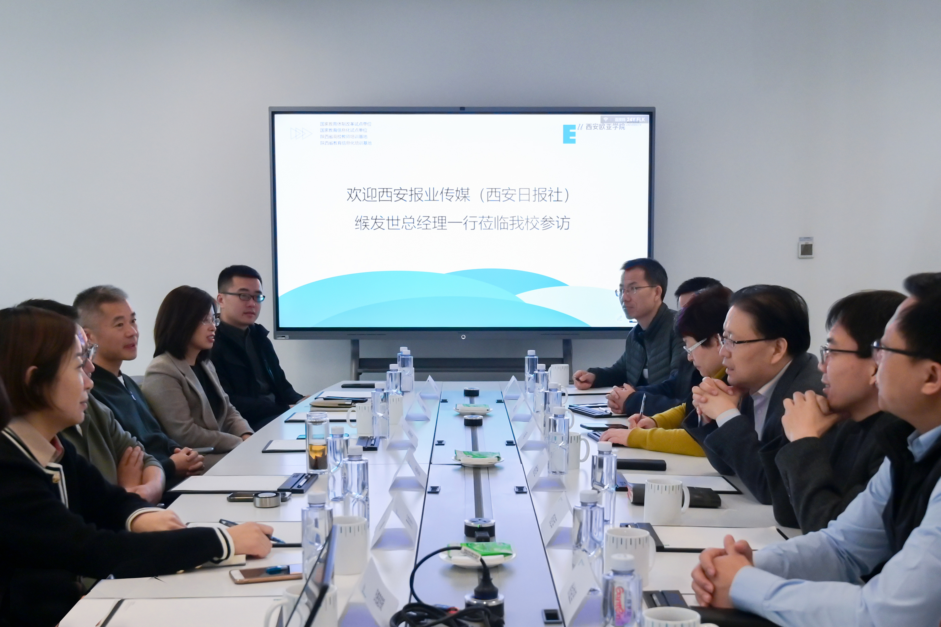 2023年1月9日上午,西安报业传媒集团(西安日报社)总经理缑发世、副总经理李明及部分事业部负责人一行7人来beat365参观访问。beat365董事长胡建波,文化传媒学院、通识教育学院、基建处、品牌传播部、学校办公室相关负责人出席。双方就校媒融合、融媒体建设、园区有机更新等方面进行了沟通交流。
