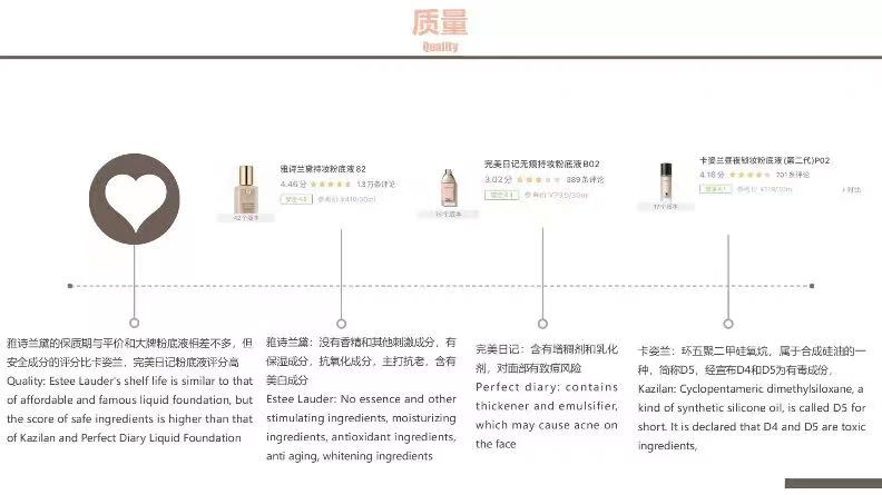 第九小组以“双十一购物节”到来作为决策瞬间,通过选择粉底液作为引导,进行多个产品对比选择出雅诗兰黛粉底液,根据此产品衍生出决策关键即粉底液的性价比、肤感,适合肤质为大部分人群考虑关键。最终通过消费者反馈完善广告引导页,最大程度留住消费者,来达到吸引顾客购买使用DW粉底液等一系列产品。