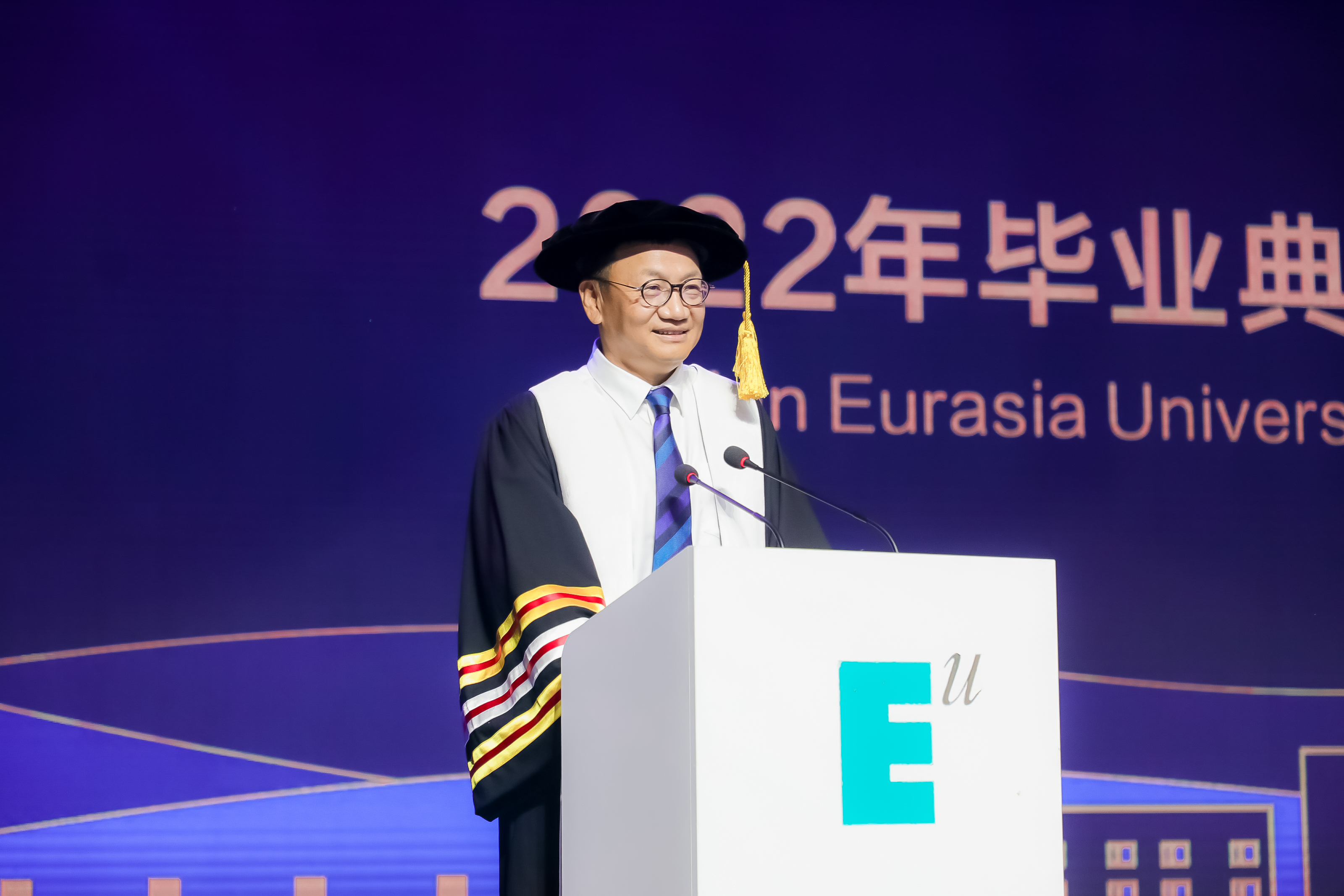 “心怀利他主义、坚持长期主义、建立特殊使命”,这就是欧亚的办学理念,也是我对同学们的临别寄语。感谢你们选择了欧亚,感谢你们对欧亚的热爱,由此开始,随处可往!(掌声)
