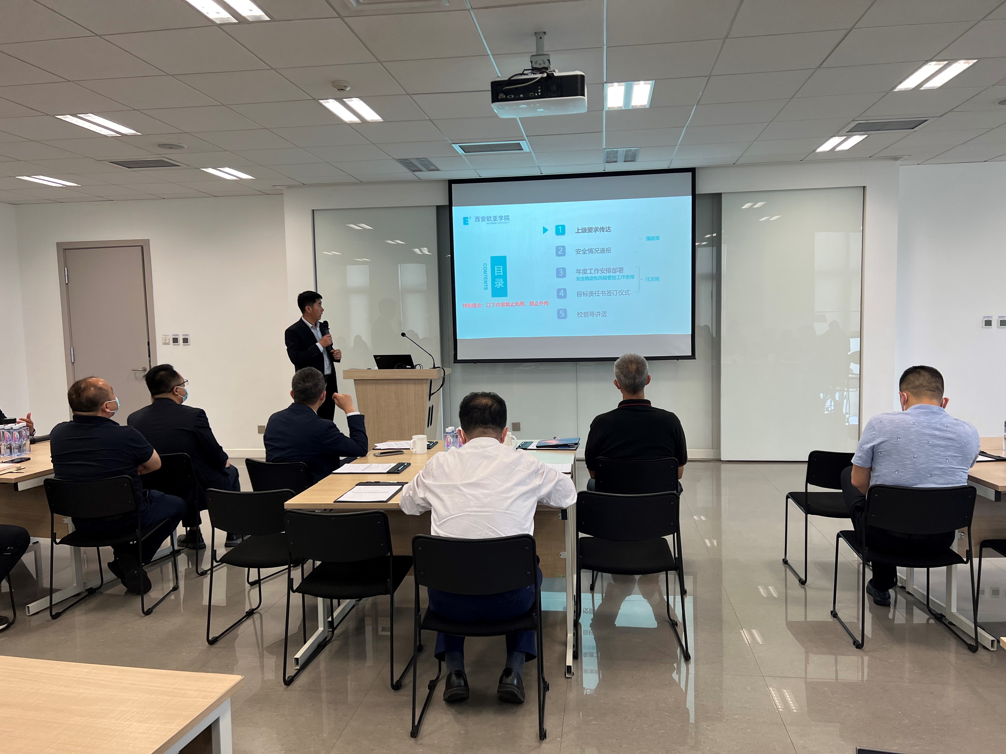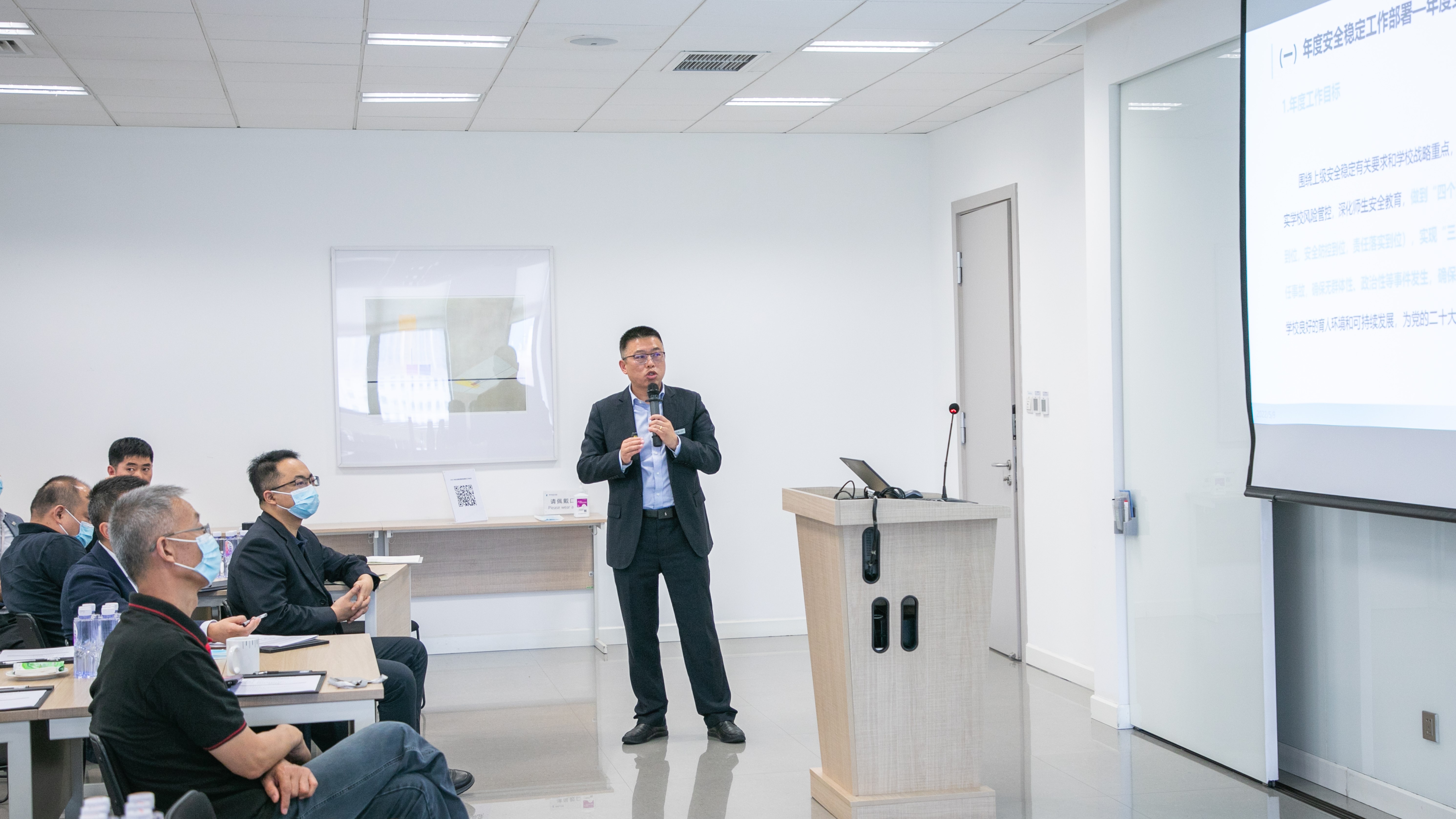他强调,各部门要紧紧围绕“以学生为中心的办学理念”,全面贯彻落实习近平总书记总体国家安全观,从政治安全、运营安全、社会安全、疫情防控等方面抓落实,承担守土有责、守土负责、守土尽责的责任,以我们的实际行动迎接党的二十大胜利召开。