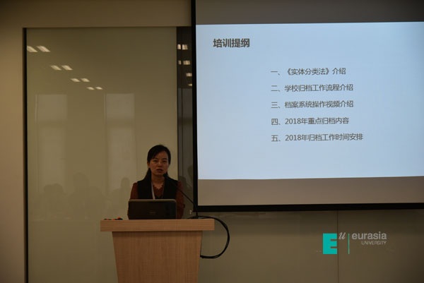 培训中,学校通报了2017年学校档案工作完成情况,为受表彰的单位和个人颁发了荣誉证书。学校办公室李俊连老师分别介绍了学校实体分类和归档工作流程,对2018年重点归档内容和时间安排作了详细说明。