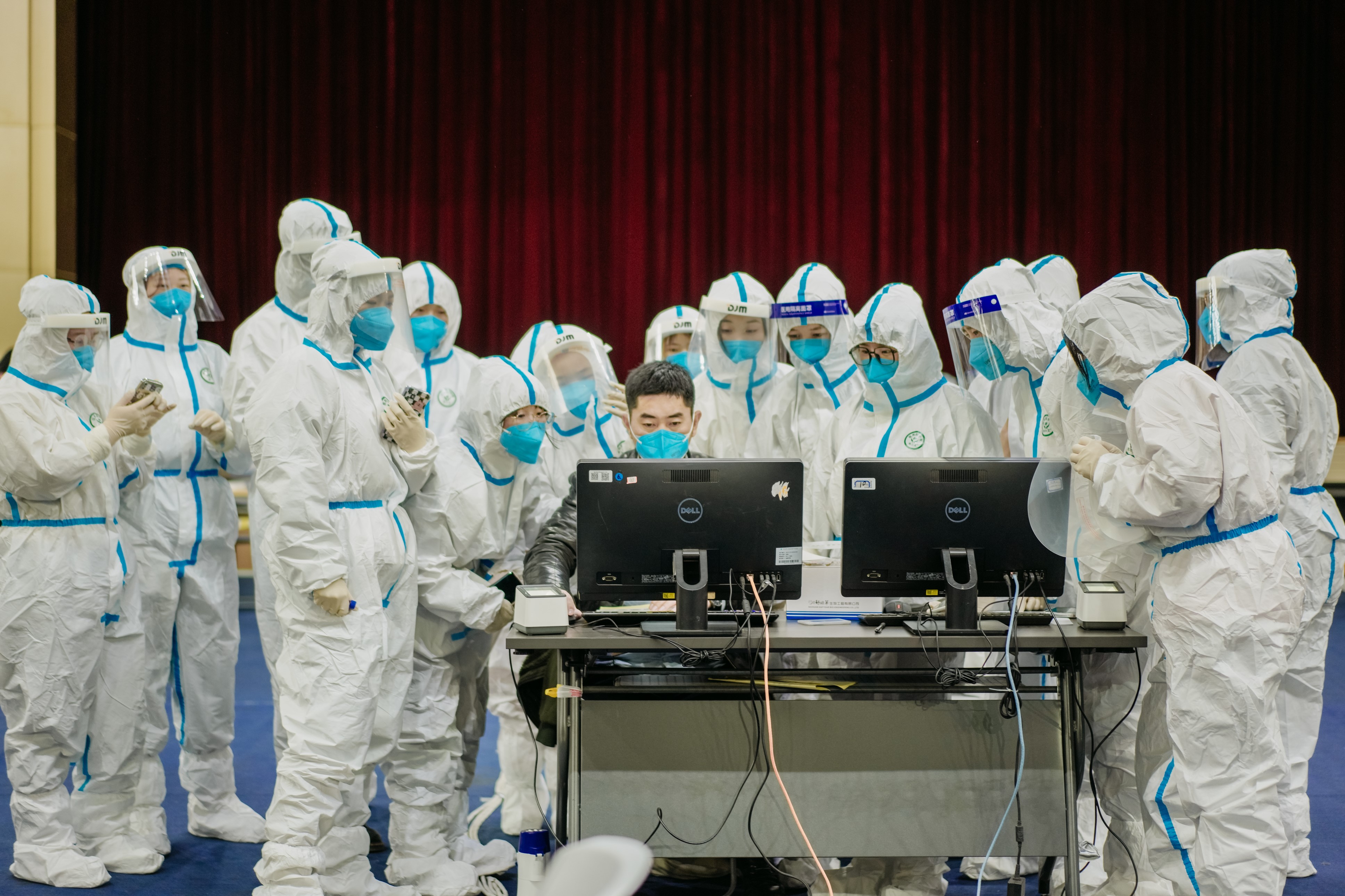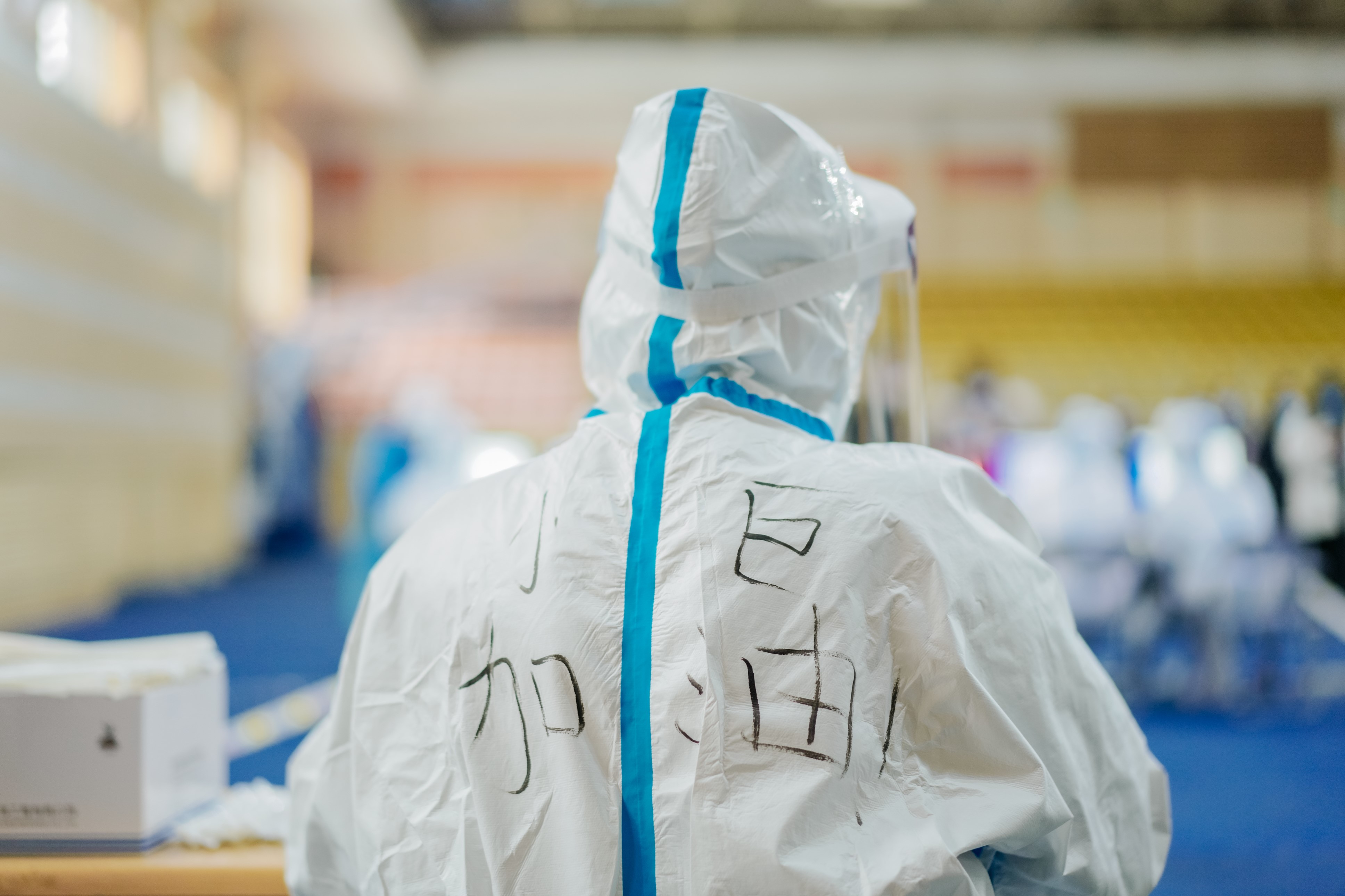 拍完退役军人帮助防疫工作者们搭帐篷,下午回宿舍接着上网课,发觉缺少医护人员以及防疫志愿者们的照片素材,又继续扛起相机前往体育馆。