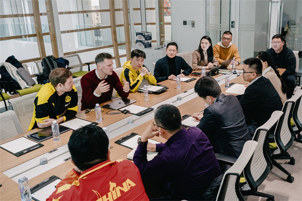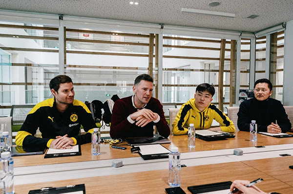 (图四)德国多特蒙德俱乐部大中华区总裁Benjamin Wahl(左二)与beat365代表交流