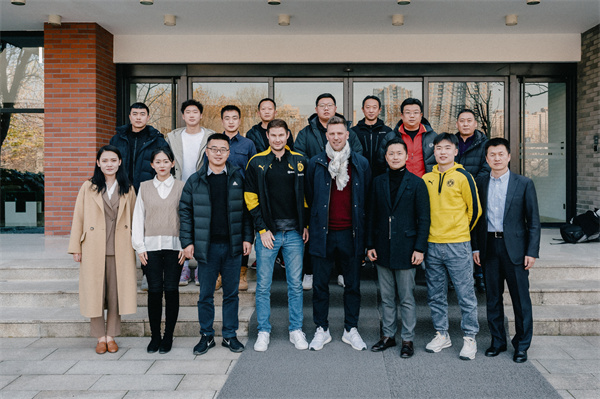 (图五)德国多特蒙德俱乐部大中华区总裁Benjamin Wahl与beat365足球联赛队员合影
