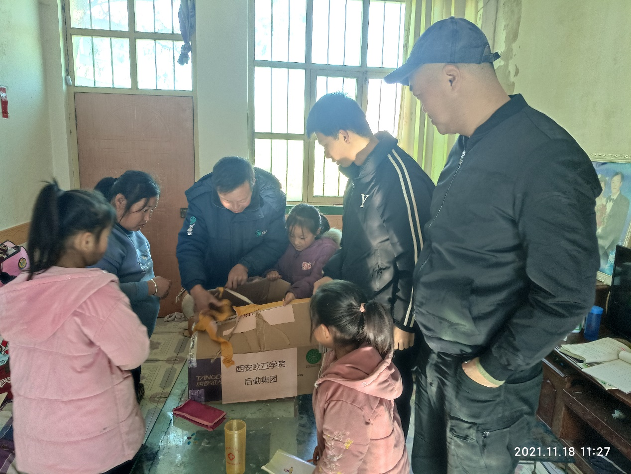 学校领导慰问工作队,为村民们在严寒的冬天能有更好的生活条件,带来一批防寒物资。脱贫不稳定户王占军家,一直是学校领导特别关注的对象,后勤集团党支部为王占军7个女儿带来一批学习用品,鼓励孩子们认真学习、健康成长。