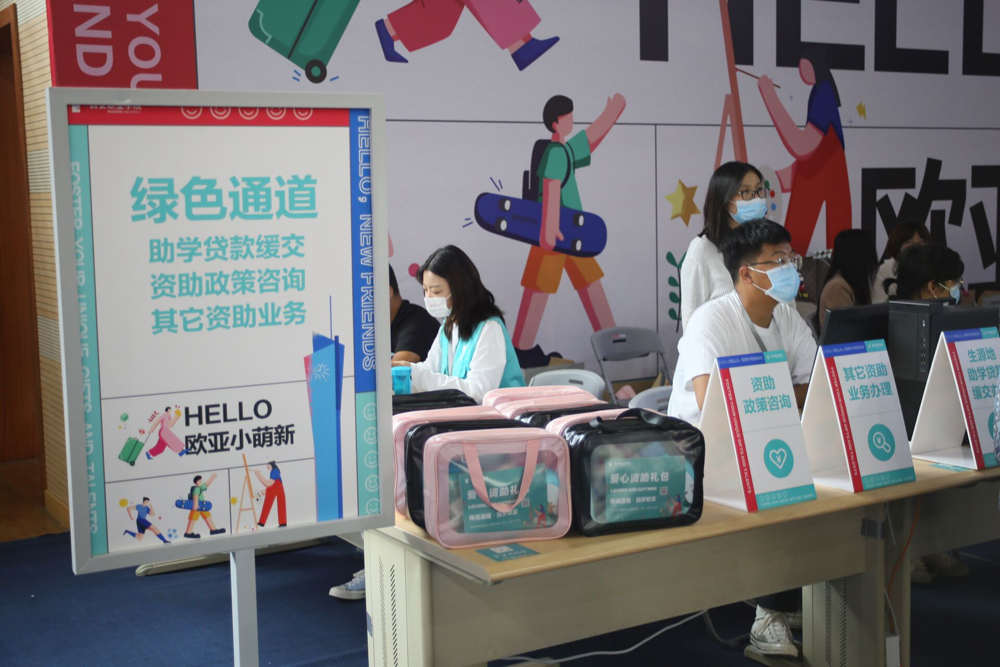 工作前置,入学无忧。为让学生在报到前就能了解学校“奖、助、贷、勤、补、免”六位一体的学生资助政策。学校提前启动了新生资助工作,随新生录取通知书邮寄了5000余份《beat365手机版官网学生资助政策简介》和《家庭经济困难新生认定申请表》;暑期期间开通了2部资助热线电话,随时解答家长和新生的咨询;通过“欧亚学生生活辅导”微信公众号推送“资助政策简介”;优化了线上助贷办理流程;提前组织全体新生辅导员开展了资助业务专题培训,确保家庭经济困难新生无忧入学。