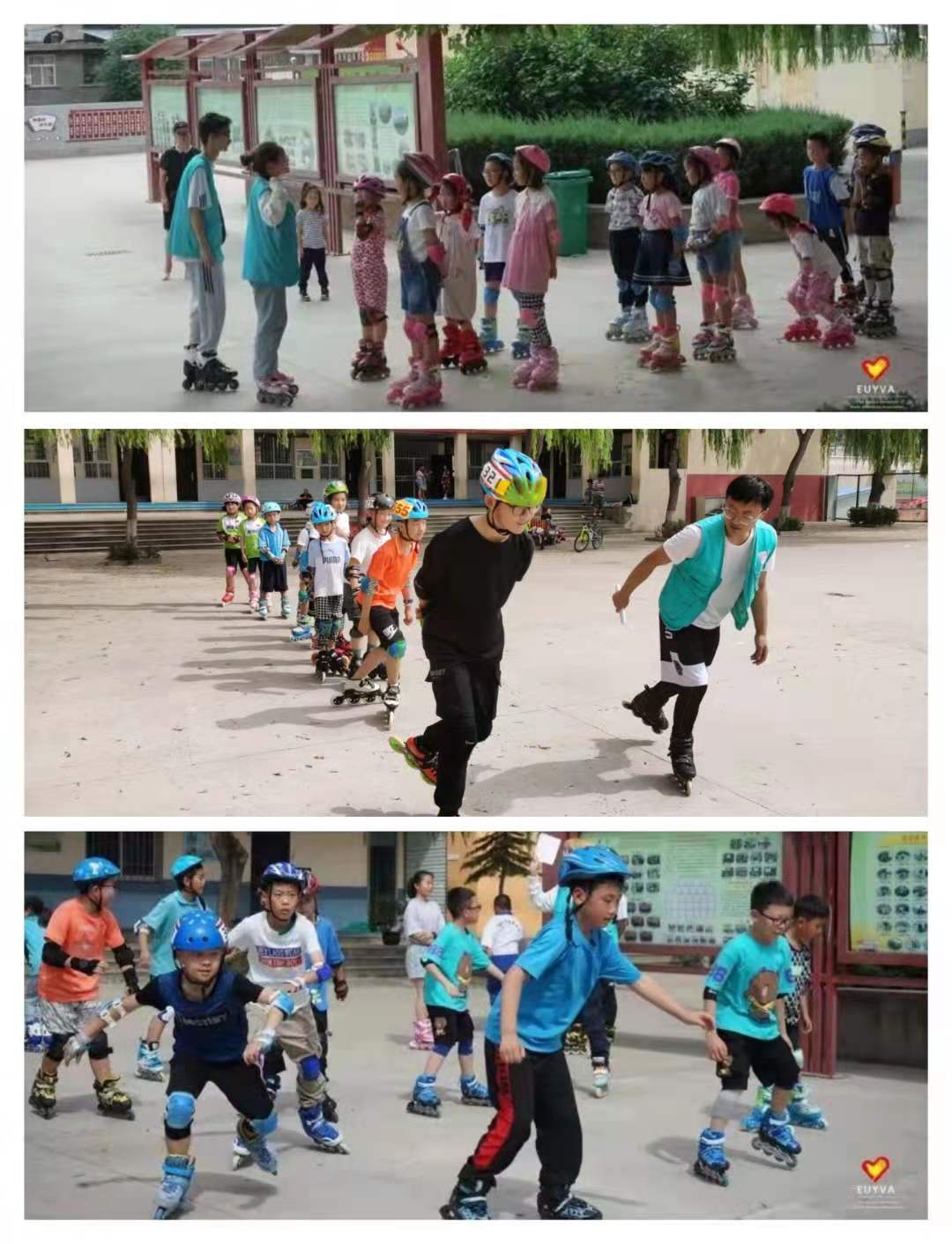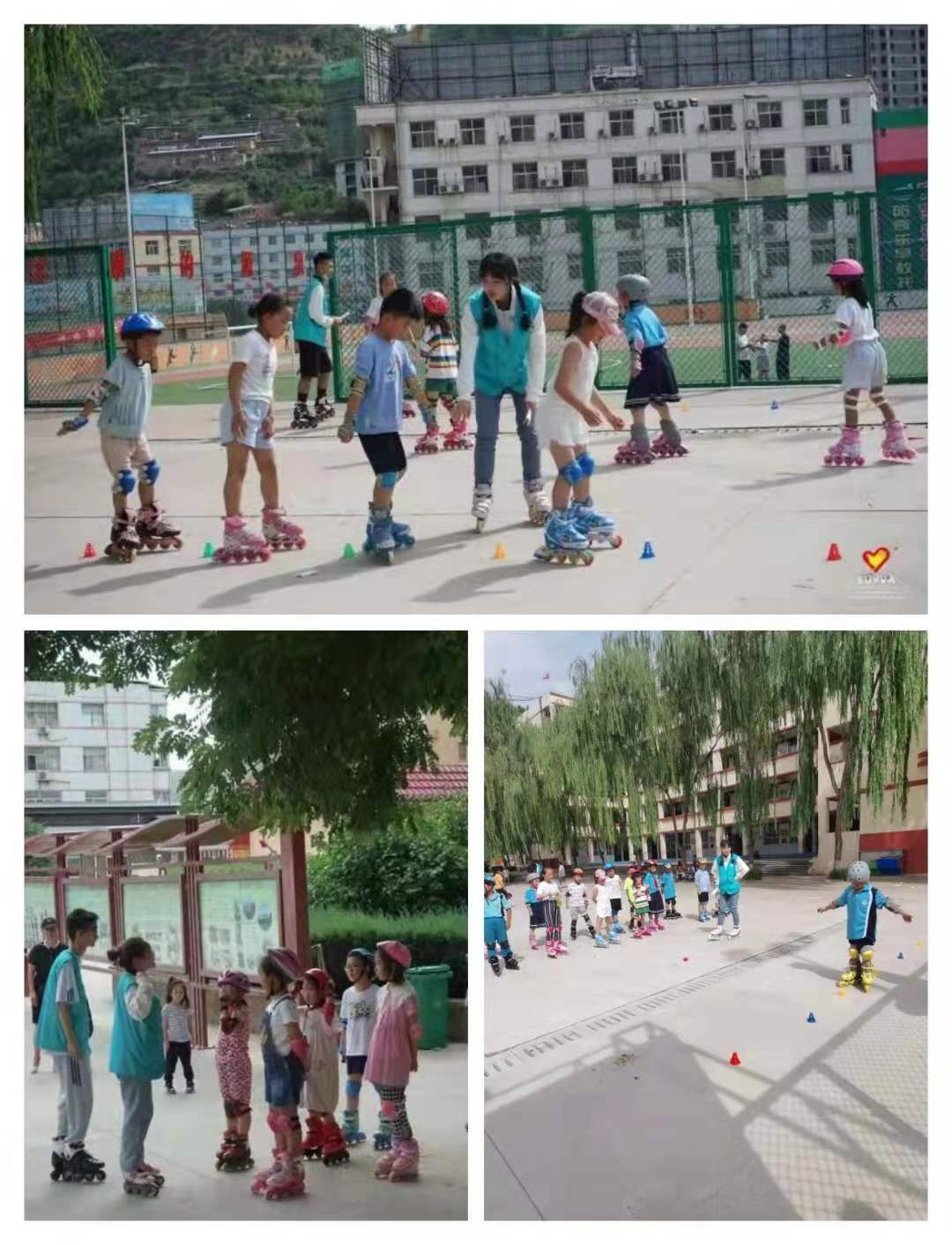 在室外的轮滑教学中,支教团成员从简单的站立开始教起,通过示范教学,不断加强学生们动作的规范性训练,逐步提升轮滑的行进速度,在训练过程中,志愿者认真观察每一位学生的表现,并给予积极的鼓励和帮助,让孩子们在轻快活跃的课堂中不仅学到了轮滑知识,更磨练了坚强的意志、提高了持之以恒的优秀品质。