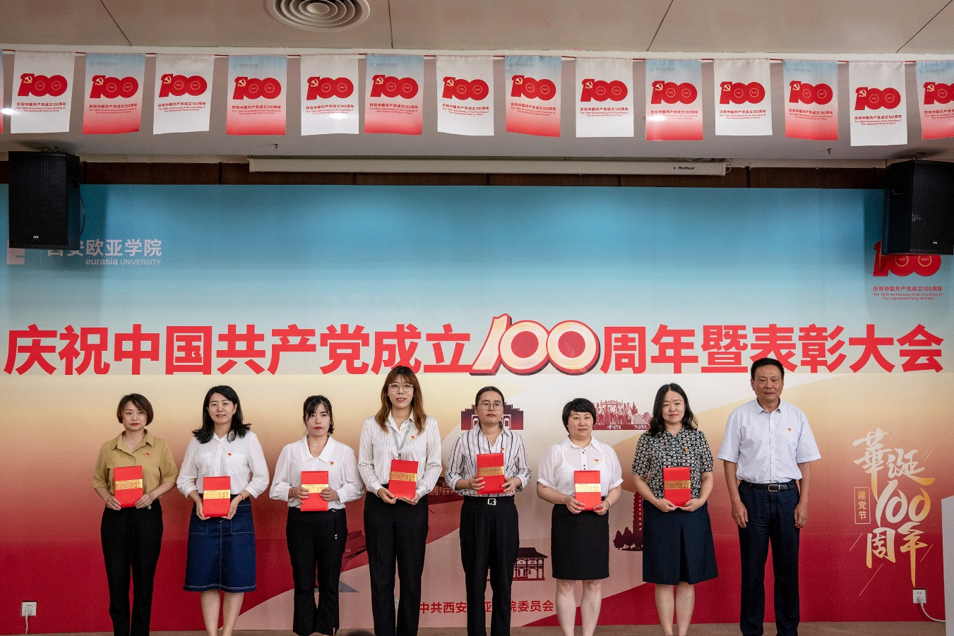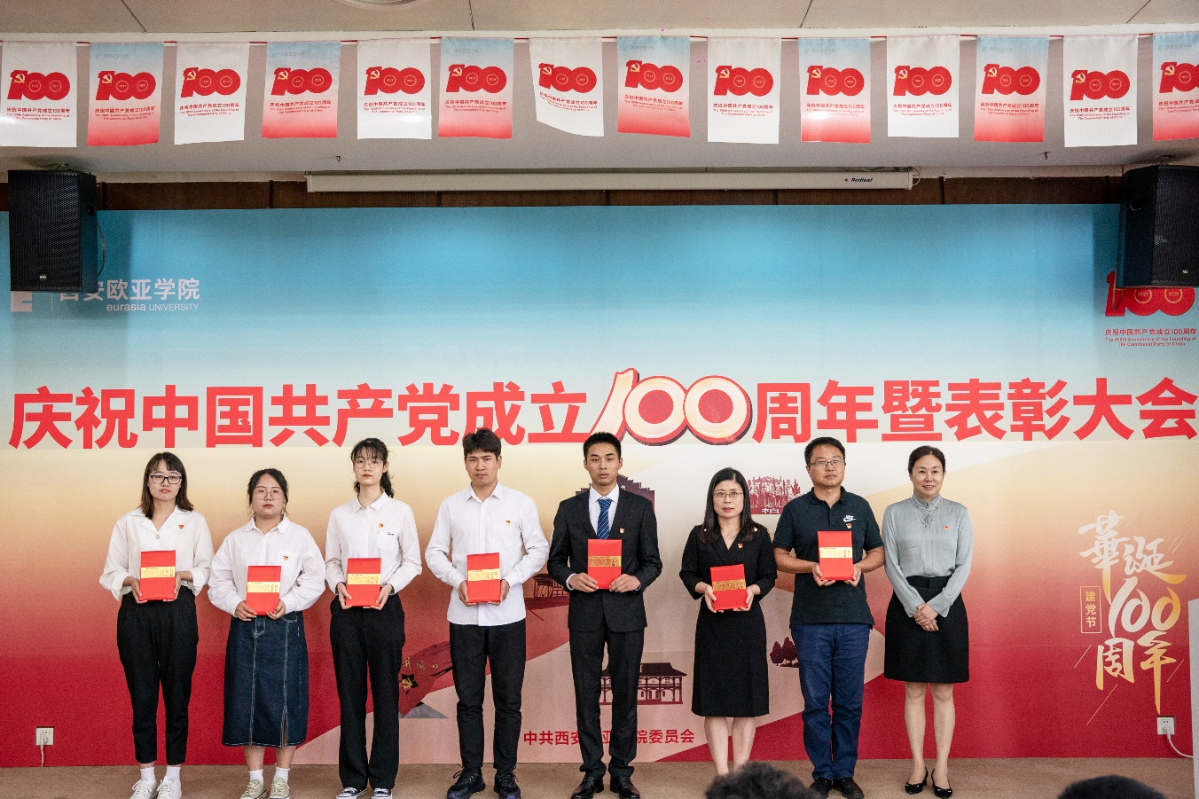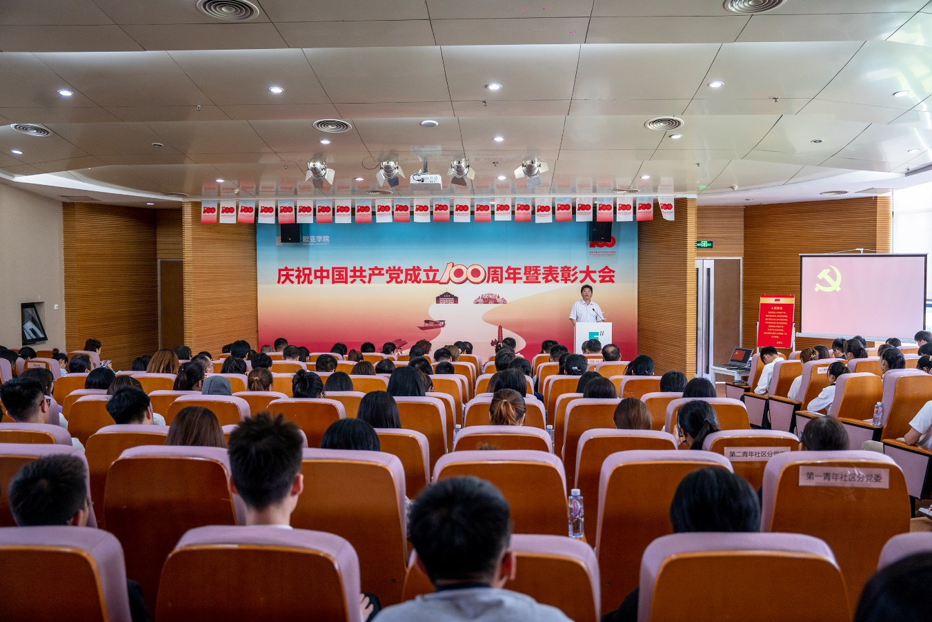 7月8日,学校庆祝中国共产党成立100周年暨“两优一先”表彰大会在图书馆学术报告厅隆重举行,校党委书记、党史学习教育领导小组组长于孟晨,校党委副书记、校长、党史学习教育领导小组副组长刘瑾,校党委副书记、纪委书记、党史学习教育领导小组副组长王志强,学校党政领导、党委委员、纪委委员,以及各基层党组织书记和师生党员代表,受表彰的先进集体和优秀个人代表等共计200余人参加大会。大会由校纪委委员、副校长张军宏主持。
