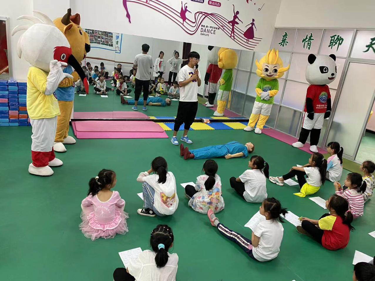 校青协的志愿者向小朋友们介绍了有关十四届全运会相关知识。在小朋友与志愿者们的欢声笑语中,小朋友们用画笔记录下了与四个吉祥物的美好时光。
