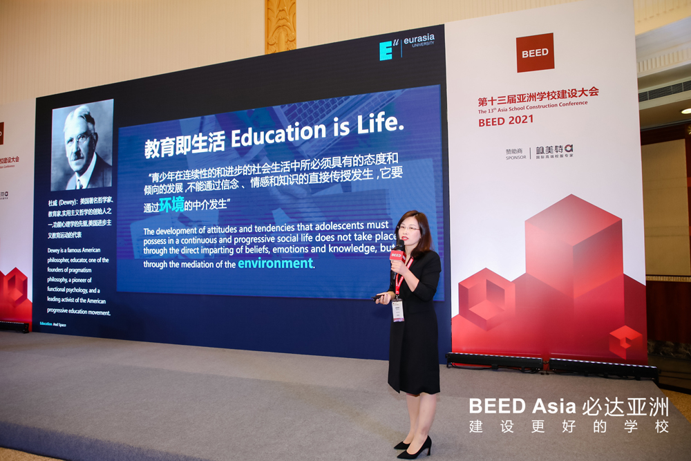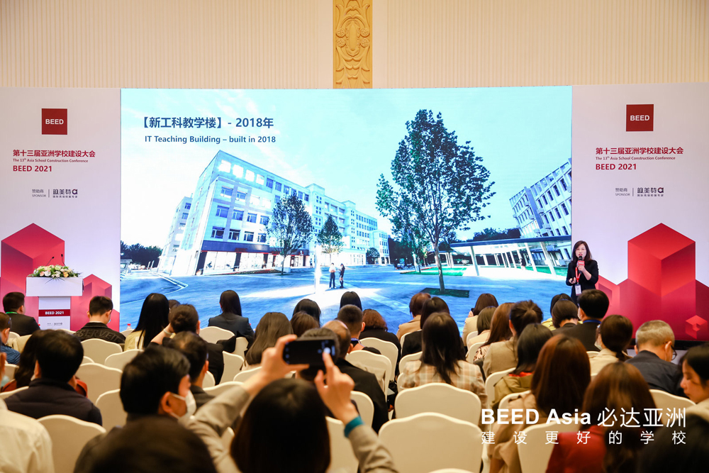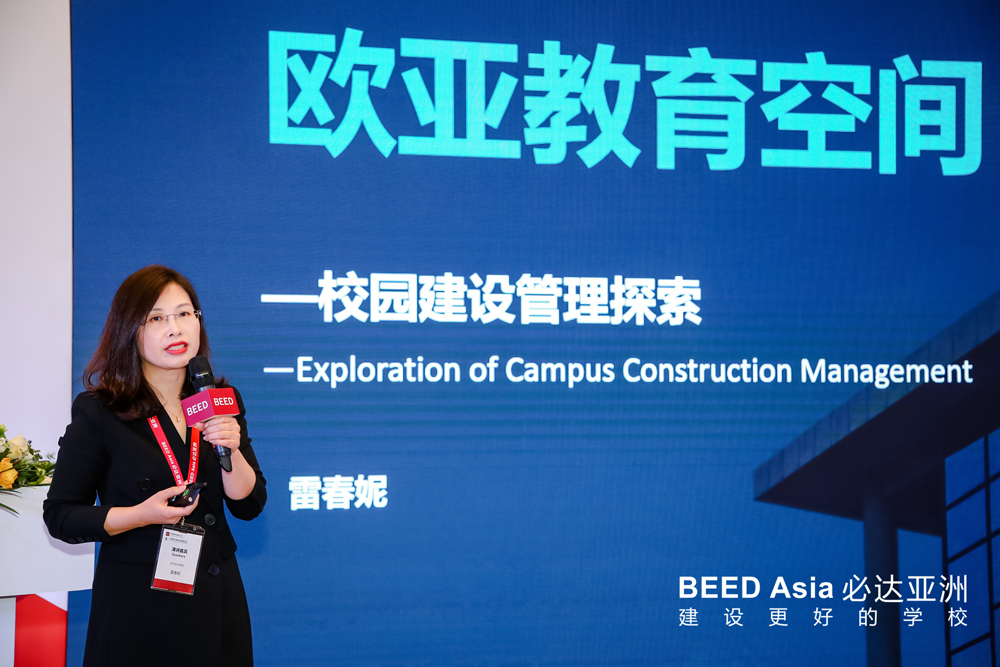 2021年3月31日,BEED2021亚洲学校建设大会的第二天,现场依旧人气不减。当天召开的6个论坛分别为:“中国学校投资及品牌发展峰会”、“新建学校项目管理论坛”、“中国学校校长高峰论坛”、“国际学校运营与管理论坛”、“人力资源与教师成长论坛”、“可持续校园建筑发展论坛”。一批重量及嘉宾纷纷亮相,聚焦行业热点话题,多方位深层次探讨,为现场参会者带来了精彩的主题演讲。这其中就有本次论坛邀请的首席演讲嘉宾:基建处处长雷春妮,做为深耕教育空间策划及环境研究十余年、校园建设管理的管理者,beat365手机版官网基建处处长雷春妮一直在探索和打造高品质教育空间的路上默默前行,她分享的关于欧亚教育空间—校园建设管理探索,引起了会场不小的轰动,现场掌声不断,高潮迭起,整个演讲精彩而有力,现场嘉宾给予一致好评及高度认可,现场圈粉无数。
