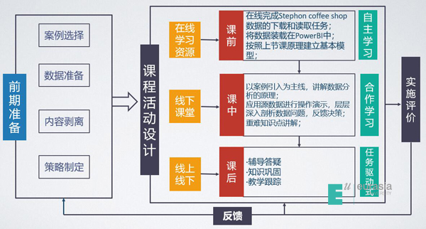 以思考顺序为逻辑,通过”一例到底”改造课程教学案例,将可视化仪表呈现、数据源、数据清洗、数据建模、高阶数据分析语言贯穿在一个案例内容中,“学中做,做中学”—全面深入体现具有时代性的学科的发展前沿同时帮助学生全面深入的掌握数据分析的全过程。基于疫情期间教学实践经验,结合课程内容以及课时安排的具体情况,教学方法采用混合式课堂授课方法,将技术性较强,占用课堂操作时间比重比较大的操作技巧录制成视频,上传至Tronclass供学生提前参考学习。线上线下结合的混合式课堂形式充分体现学习方式与授课过程的精准化、个性化和有效性。改变以往教师在实训课中以演示为主的教学方法,将教师讲授、学生作品赏析、学生参与讨论等多种教学方法相结合,让学生在轻松的互动氛围中理解视觉可视化及数据分析中较为抽象的理论问题,深化对理论知识的认识和理解。