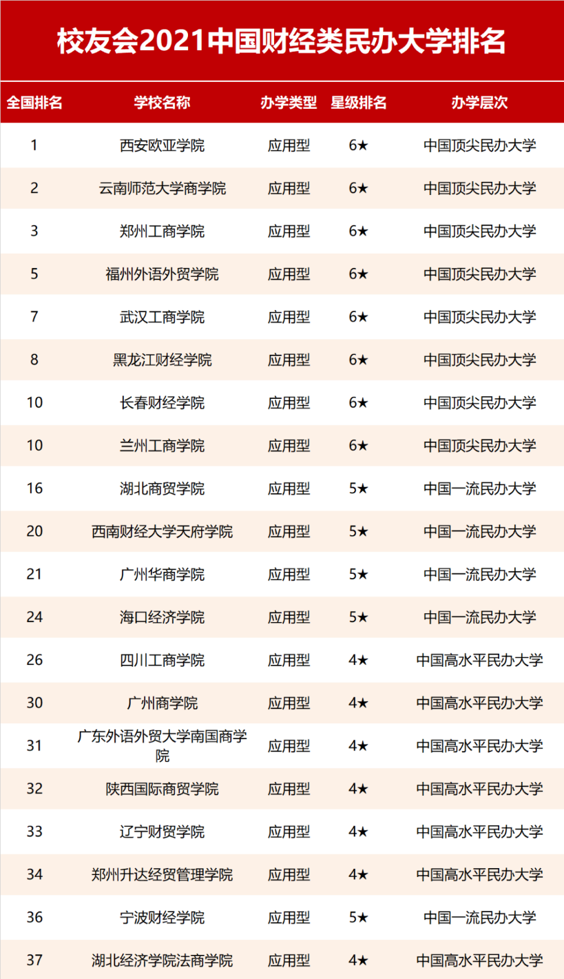 (图一)艾瑞深中国校友会网财经类民办大学排名(部分)