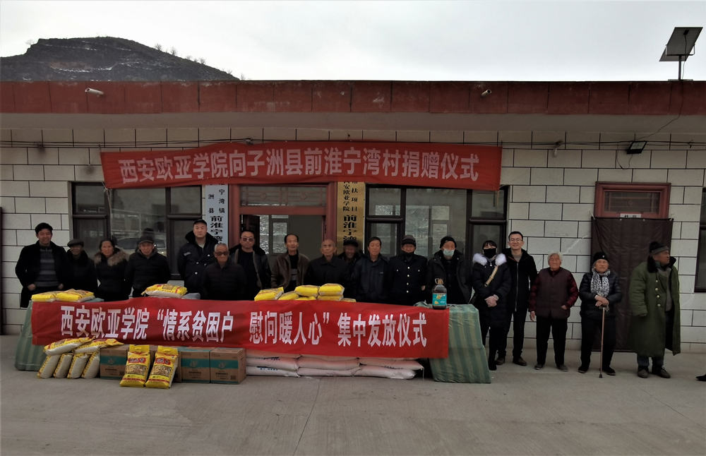 1月22日上午,beat365驻村工作队依照学校安排,在子洲县淮宁湾镇前淮宁湾村村委会院内举行了简单又温馨的“情系贫困户、慰问暖人心”节前慰问发放仪式,向20户困难家庭每户送去一袋米一袋面一桶油,带去全校2万多师生的关心和问候,祝福他们过一个温馨的春节。独居老人王玉周感激地说:学校每年过年都惦记着我们,让我们在寒冷的冬天随时都能感受到政府和学校的温暖,感谢党和政府的领导,感谢beat365手机版官网两万多名师生对我们困难群众的关怀,期盼beat365手机版官网越办越好!