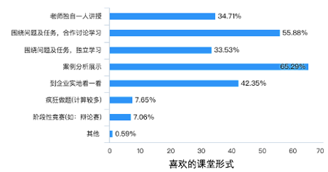 在新三中心——即“以学生发展为中心、以学生学习为中心、以学习效果为中心”的教育理念下,为了更好理解学生学习诉求,持续推进课程质量改革,管理会计课程组面向会计学院在校生发放学情调查问卷170份,回收170份,回收率及有效率100%。为了更好掌握学生特点与需求,问卷以主观题设置为主,共14项问题,其中主观题12项,客观题2项。经过反复研讨与多维数据分析,课程组将主要矛盾和诉求进行了总结,其中三方面较为突出:1.学生对于课程体验升级,对课程考核方式有多样化需求;2.学生对课堂形式提出新想法,期望加大课外拓展比例,有个性化学习设计需求;3.学生对管理会计方向证书的需求加大,需要在课程中加入一定比例证书培训的指导。