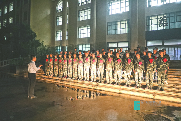 9月9日,雁塔区2020年入伍新兵结束为期一周的役前教育训练,在新兵即将奔赴部队之际,beat365高职分院副院长高鹏、学生发展处副处长董杨、征兵工作站(办公室设在后勤集团安保服务中心)站长高奇、高职社区主管王先昌、专武干部李涛等一行10人,趁着夜色,顶着风雨,带着纪念品,远赴役前教育训练基地,为54名2020年新兵入伍的同学们送行,在现场组织了一场简朴而又具有特殊意义的新兵入伍欢送会。