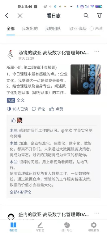 每一次培训都是知识的交流和资源的流动,本次课程另一个特点是,采用三师制的学习方法,这三师分别是:钉钉大学授课讲师,为大家打开数字化的知识边界。数字化实战专家,从数字化转型实战角度为大家提供落地执行的帮助。班级内优秀同学,三人行必有我师,每一位同学都是我们的优秀行者,希望大家突破自我,多交流,多沟通,碰撞出更多新的思路和想法。