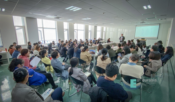 活动第二部分是关于科研团队业绩考核及评优办法的意见征询。为规范科研团队管理,推动团队的持续发展,科研处特草拟了校级科研团队业绩考核及评优办法。科研处席莹老师分别从考核目的、考核方式、考核周期、考核评优、考核结果五个方面详细地介绍考核办法,并面向科研团队征求意见。她表示科研处将结合征集的意见制定出具有欧亚特色、符合欧亚团队的考核办法,推动团队建设,促进团队高速发展。