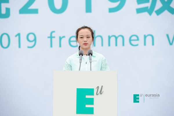 随后,以516分的优异成绩考入欧亚的新生代表芷秀娟说:“我希望此刻,以这场盛大的开学典礼为起点,我们都在心里为自己立一个小小的目标,在欧亚用三四年的时间去努力实现。如果,当我们毕业时,能够成为一个勇敢、正直的人,一个视野开阔、乐观向上、具备独立思考能力的人,一个可以正确的看待世界与自身关系,并懂得与人合作的人,那么,我们在欧亚的时光就一定没有虚度。”