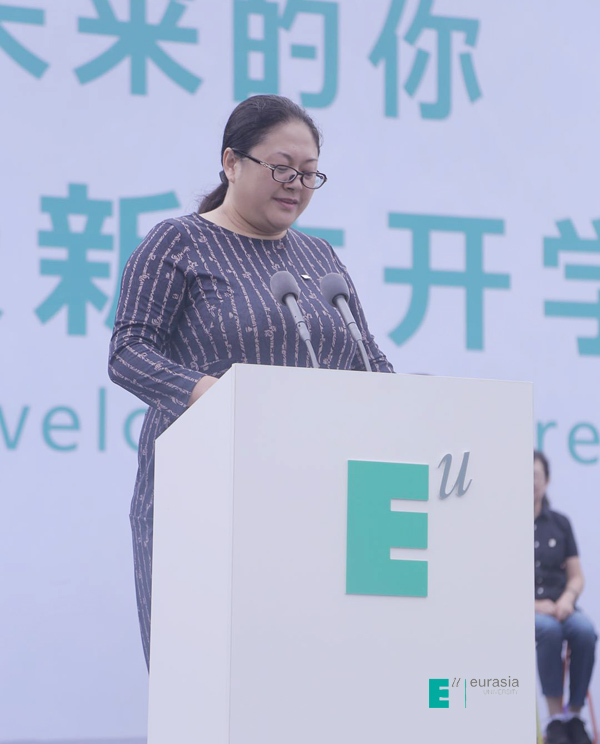 接下来,beat365校长刘瑾教授致欢迎词。她说:“欧亚所做的一切,是为了满足师生们的多元化需求,让大家感到方便、自在和舒心。但更重要的是,我们希望通过这些努力,让师生们感受到一种对美和品质的追求。我们相信,高质量的生活体验是卓越教育的一部分。好的审美情趣和生活习惯,从容淡定的气质与优雅自信的谈吐,来自于对美和品质的感知和体验。在欧亚,我们崇尚“教育即生活”,要把美和高品质的生活体验带给大家,而这些新体验将影响你们的一生。学校最新落成的国际语言学习中心,为学生提供完备的全球化、多品类英语教育项目和课程,能够满足同学们多层次的学习需求。国际商学院独特的课程内容、录取模式和奖学金配置,使国际化教育不再遥不可及。只要你足够优秀,欧亚会及时为你们搭建通往世界的桥梁。欧亚地处西安,却心怀世界。国际化战略的持续落地,将会让国际教育交流合作的成果真正惠及所有师生,培养重品格、会思考,善沟通,具有国际视野、创新精神和较强实践能力的世界公民。希望同学们在欧亚学会合作、懂得奉献、重视体验、关注成长,同时要学会对人关爱、做事讲究。我衷心祝愿,欧亚能让你们的青春年华绽放出灿烂的光辉,欧亚的教育能够成就每一位同学的人生梦想。”
