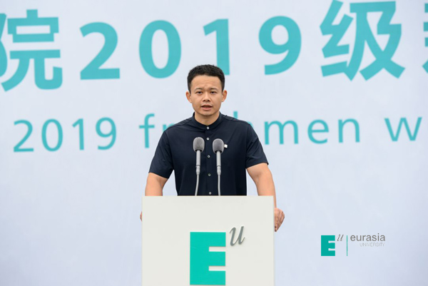 人文教育学院陈阳老师代表全体教师发言。陈阳老师说:“欧亚是一个有趣的地方,他很年轻,没有那么多丰厚的履历可以让每个人“沾光”,沾光这词特别有意思你们想过吗?那个“光”是什么?你们想过吗?因为当年的我们无光可沾,不得已埋头努力的发现需求,贡献价值,我的同事们努力多年,这所高校开始在中国高等教育界薄有声望,可我们并不追求浅薄意义上的成功,我们恪守自己的价值观,寻找自己的社会价值,也希望我们的学生能有一天放下向外寻找标签和认同,专注向内的自我修行。你们要去图书馆阅读经典、要在学习与社团活动中竭尽全力的自我挑战,它一定可以帮你在某一个瞬间开启自我的觉醒。”