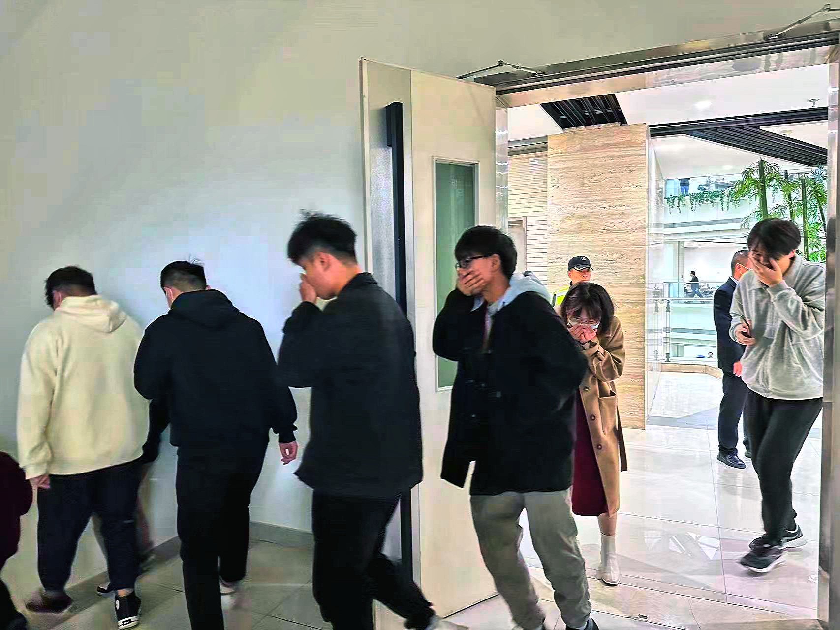 (图二)消防疏散逃生演习现场烟雾弥漫