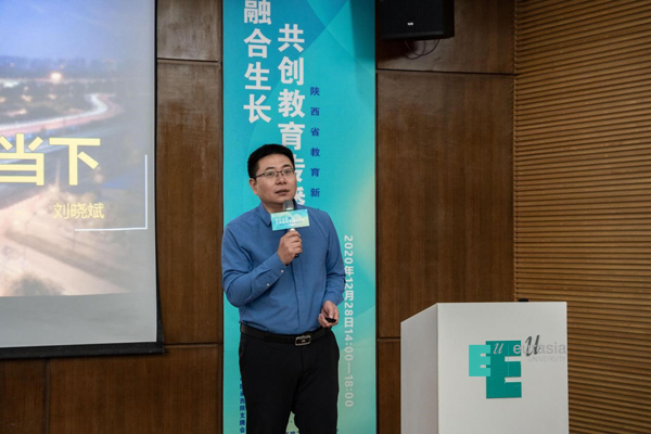 张乐芳助理在欢迎致辞中指出:受疫情影响,陕西省教育新媒体研究院改变原有线下培训模式,在腾讯企鹅学院“双百云课”上线了四门新媒体课程,希望能助力疫情期间运维人员的新媒体能力提升;也在疫情许可条件下,送培训上门,尽可能帮大家解决实际运营问题;同时,在数据可视化分析、数据专项报告研发方面进行了很多探索,这些探索,也为欧亚学院的应用型人才培养提供了有利土壤。