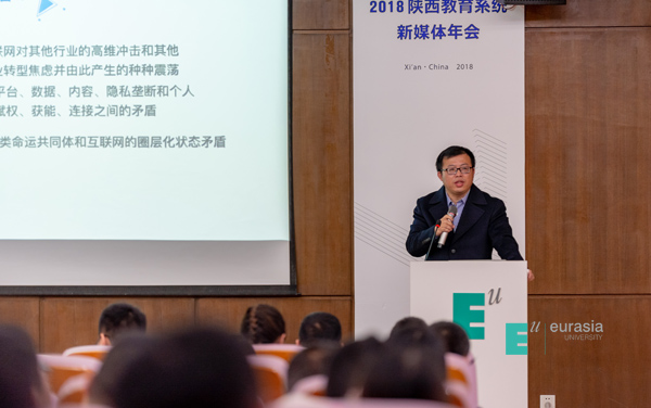 胡建波教授在致辞中表示:在过去的两年中,陕西省教育新媒体研究院在委厅和学校的共同领导下成长迅速,为打造全省教育新媒体品牌做出不少积极尝试,并在全省教育系统新媒体运营能力提升、教育舆情应对、统筹开发业务培训等方面发挥积极作用。