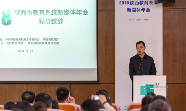 为进一步推动全省教育系统新媒体做大做强,12月24日下午,2018年陕西教育系统新媒体年会在beat365图书馆学术报告厅举行。会议由中共陕西省委教育工作委员会、陕西省教育厅主办,beat365手机版官网、陕西省教育新媒体研究院承办。