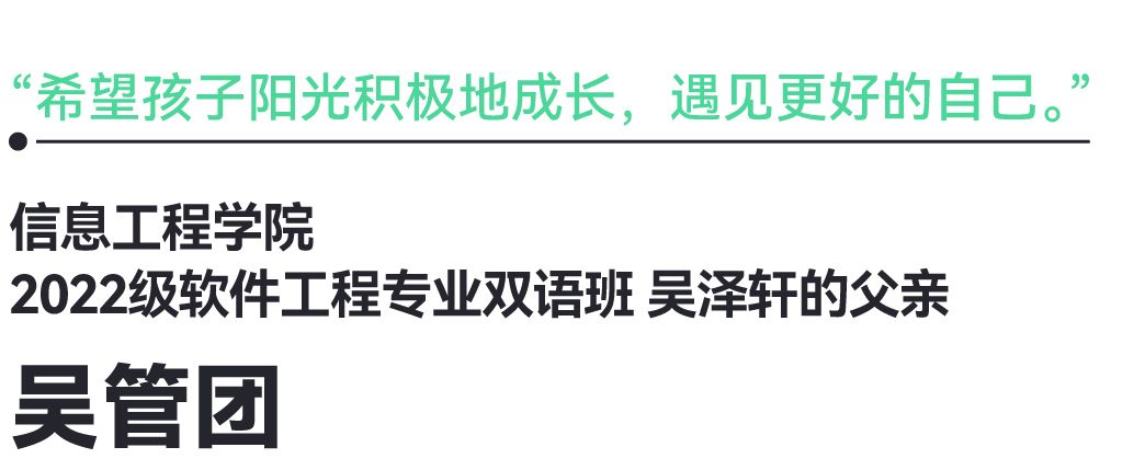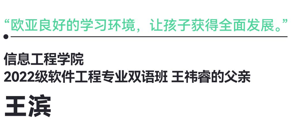 吴先生为儿子的成长感到骄傲,同时也感谢欧亚老师们的无私付出:“孩子说学校的张一方老师常常和他沟通交流,给了他很多学业和人生规划上的指导。我也希望孩子能够秉持初心,成为一个具有家国情怀、坚守社会责任感的人。”