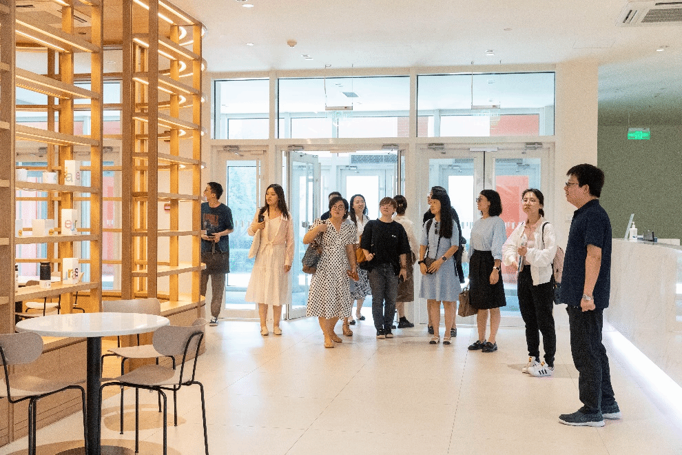 会计学院执行院长谢涛和院长助理张玮陪同橙翼公司总经理赵丹一行人参观了校园环境,为他们介绍了欧亚学院“以学生为中心”的建筑设计理念、教学空间与学生服务设施等。