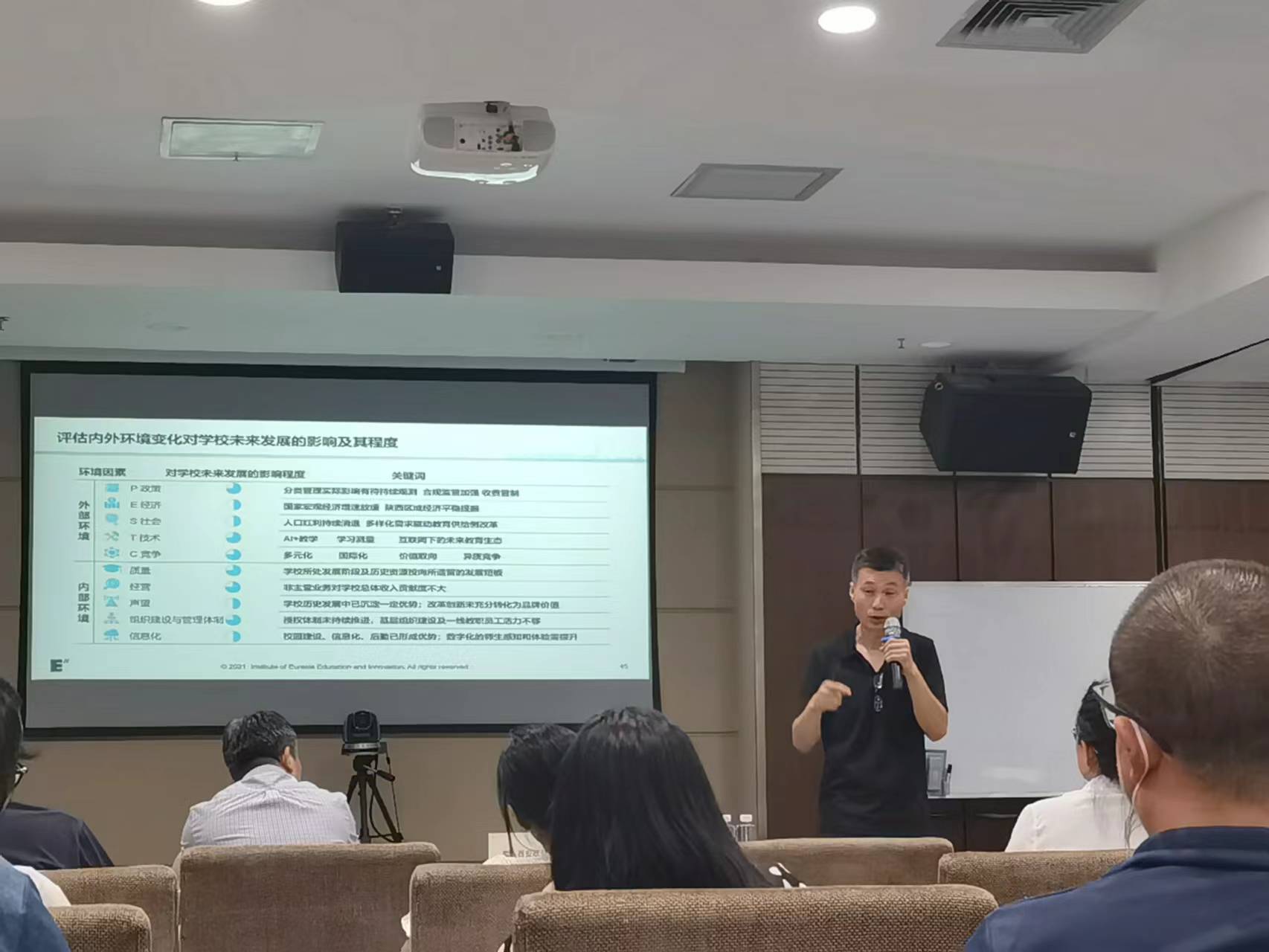 本次宣讲会分为两部分内容,首先冯伟院长从学校战略角度对beat365手机版官网“十四五”发展总体规划进行宣讲,并结合自身的专业讲解了什么是规划、如何制定规划,以城市规划为切入点,详细解读“十四五”规划建设理论基础。他首先对欧亚战略规划发展进行了回顾,随后对“十四五”规划内容进行概述,他指出需要以不断成长和更新的思维来理解整个欧亚“十四五”规划的制定形成过程,才能更好地保障“十四五”规划在欧亚落地。