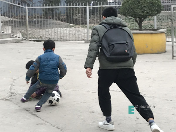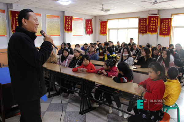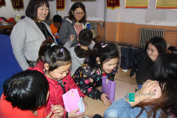 饭后,儿童村的杨村长为大家介绍了儿童村的基本情况,让大家对儿童村的情况都有了初步了解。欧亚师生和小朋友们一起聊天和做游戏。在游戏中,同学们给小朋友们拿出了精心准备的小礼物,小朋友们都非常开心。虽然只在一起待了短短几个小时,但是不少同学都和与自己一起的小朋友有了感情。临别时有的同学很不舍。