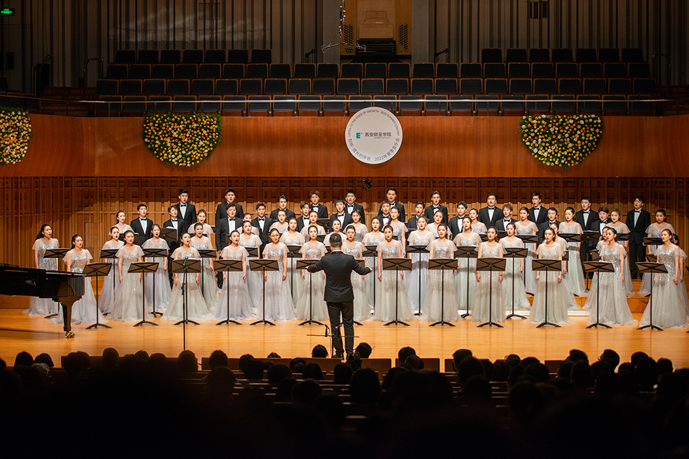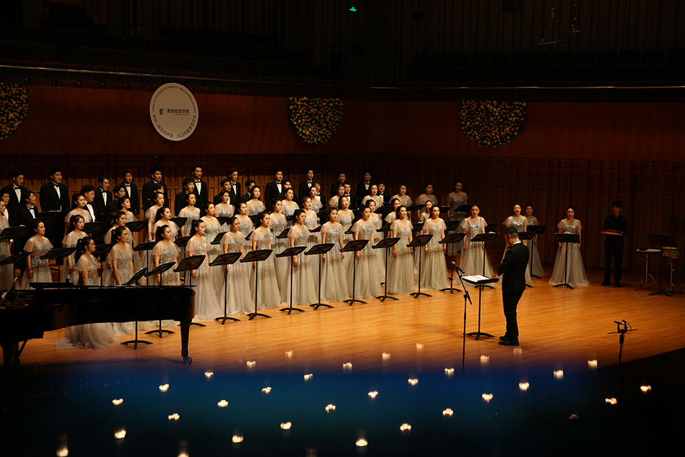 2022年6月12日晚,beat365手机版官网音乐会时隔两年再次与大家相逢。从隆冬之际转场到盛夏时节,从憧憬新年的欣喜到寻觅夏日的浪漫,于66位来自不同年级、非专业出身的合唱团同学,于李强、孙睿等合唱团的指导老师们,于1000余位再次观看合唱团演出的西安市民和关心欧亚发展的人士而言,都有着不同寻常的意义。