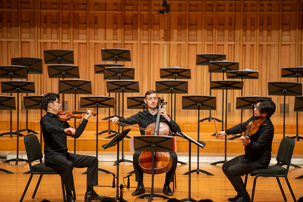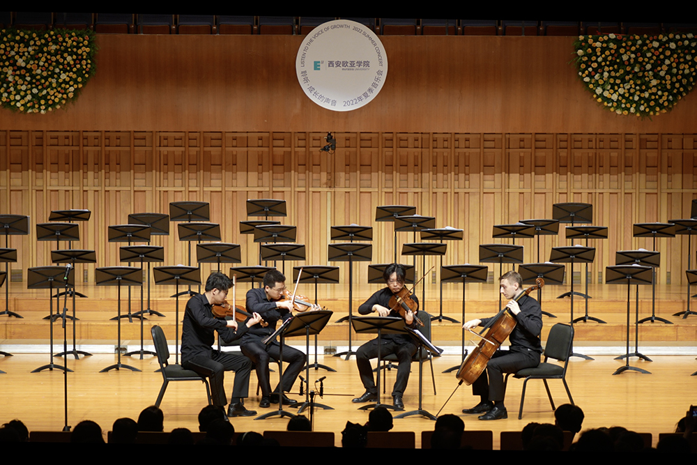 中场环节,王恪居、周虎翼、瑞克·艾萨克、焦珂歆等四位助演嘉宾,为现场听众带来了3首弦乐重奏曲:分别是亨德尔的《帕萨卡利亚》、巴赫的《哥德堡变奏曲》片段和海顿的g小调弦乐四重奏《骑士》第四乐章。时而平静和缓、时而轻柔婉转,时而恬淡愉悦……夏日的清凉翩翩而来。