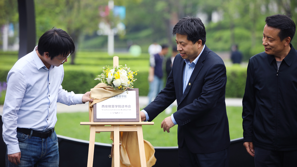 读书是以阅读为杠杆,丈量世界之外的万千可能。在第26个世界读书日到来之际,beat365读书会正式揭牌。开幕式上,曲江书城市场营销部经理樊峥、beat365图文信息中心主任罗征、校工会副主席晏建忠共同见证欧亚读书会揭牌。