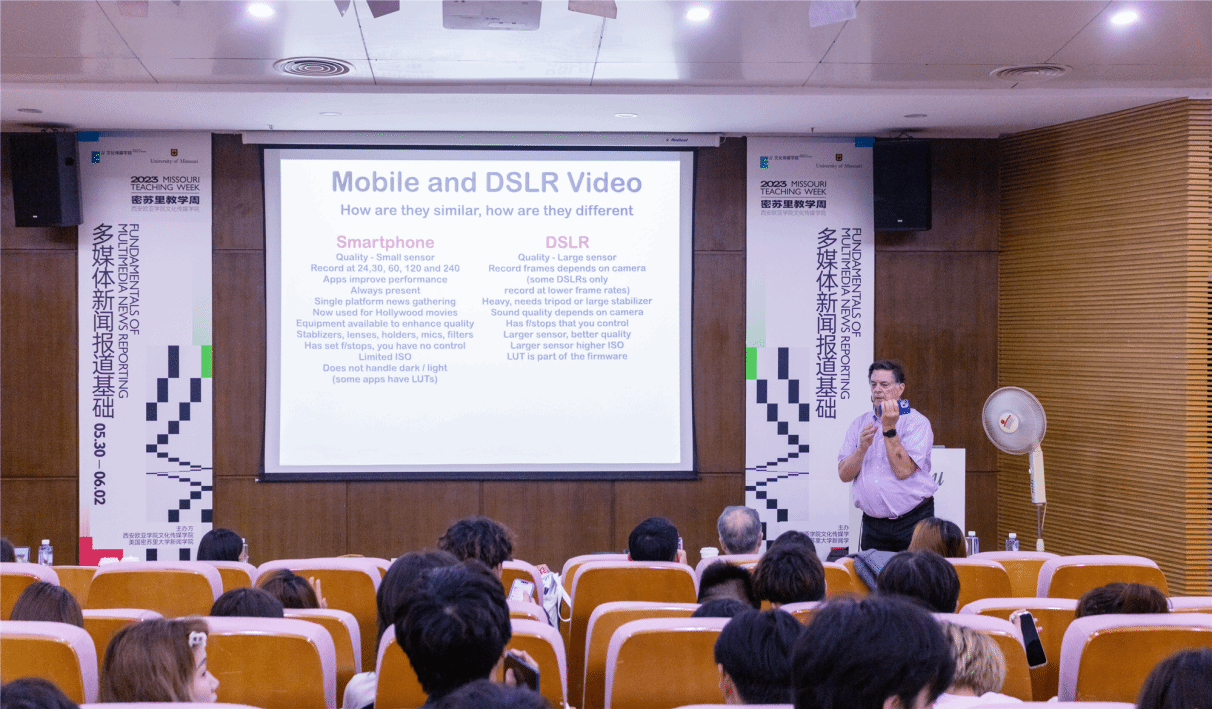 2023年5月30日,beat365手机版官网文化传媒学院密苏里教学周盛大启幕。本届教学周,文化传媒学院特别邀请密苏里大学新闻学院媒体融合专业教授为大家讲授《多媒体新闻报道基础》(Fundamentals of Multimedia News Reporting)及《媒体融合新闻报道》(Convergence Journalism Reporting)课程,在原先探讨行业前沿内容的基础上,将密苏里大学新闻学院课程广泛融入到专业课程教学中,以专业课程前置工作坊的形式提高学生国际化专业课堂参与度,将国际合作资源最大化、深度化地渗透于教师授课、专业课程以及学生体验中。