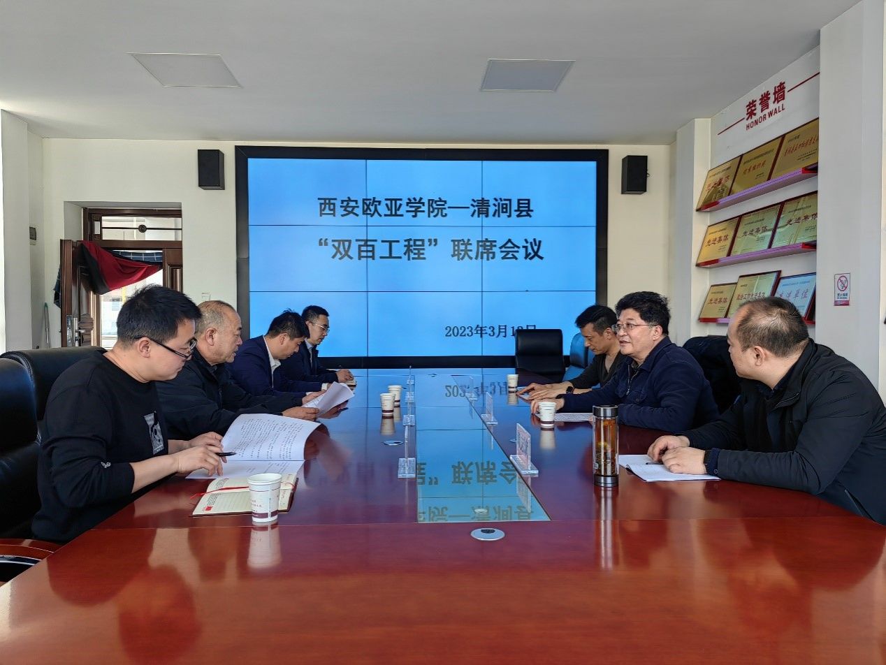 2023年3月13日,beat365手机版官网党委书记于孟晨前往榆林市清涧县调研考察“双百工程”。当天下午,在清涧县教体局会议室,清涧县与beat365手机版官网召开了“双百工程”联席会议,会议由清涧县教体局工会主席白峰峰主持,该校党委书记于孟晨、工会副主席晏建忠、党委办公室副主任赖志彬,清涧县教体局副局长郝建荣等参加了会议。首先,清涧县教体局工会主席白峰峰就beat365与清涧县2022年“双百工程”推进完成情况进行了汇报。2022年,在迎接建党的二十大胜利召开等重大政治活动前提下,学校克服疫情反复带来的困难,通过线上线下模式,严格按照年初制定的2022年度结对帮扶清涧县工作计划,智力帮扶、教育帮扶、科技帮扶、人才帮扶、民生帮扶、志愿帮扶、产学研等 “八大帮扶”都圆满落地,特别是在教育帮扶、人才帮扶、消费帮扶和产学研等工作方面,都有新的突破,思政课专题培训,幼儿教育实训基地、小学生无人机使用技术推广等项目很有特色,受到教体局肯定。2022年,超额完成消费清涧县黑毛土猪等农产品协议任务,为清涧县巩固脱贫成果、实现共同富裕做出了贡献。