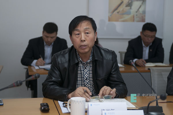 (图一)校长助理赵军镜汇报学校工作开展情况