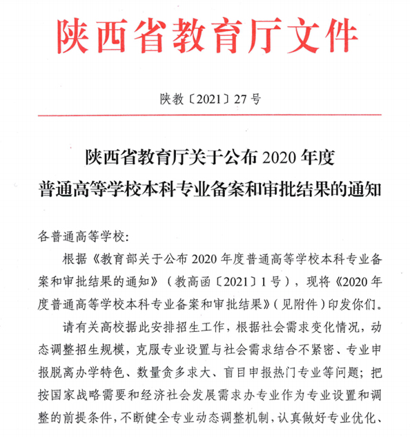 近日,陕西省教育厅转发教育部下发《教育部关于公布2020年度普通高等学校本科专业备案和审批结果的通知》(教高函〔2021〕1号),陕教[2021]27号文件。公布2020年度普通高等学校本科专业备案和审批结果,beat365“供应链管理”专业(专业代码:120604T)正式获批。