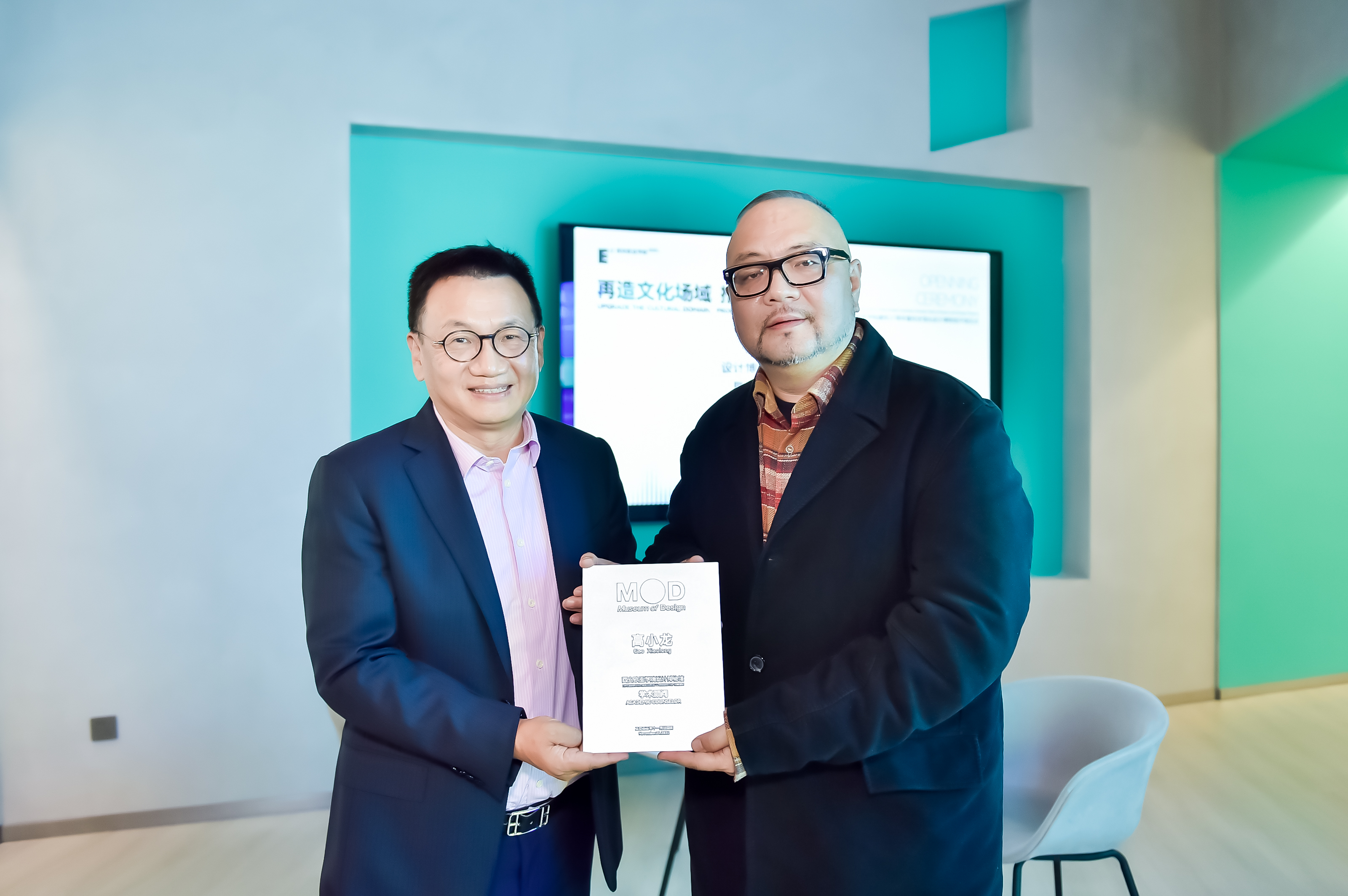 开馆仪式现场,设计博物馆正式迎来首位学术顾问——著名导演、收藏家高小龙先生。高小龙先生是2008年北京奥运会开幕式短片拍摄者、著名导演,同时也是一位收藏家。此次设计博物馆全面升级,高小龙先生受聘成为beat365手机版官网学术顾问,将多年珍藏的月份牌、书籍、画报杂志等218件藏品寄展于beat365手机版官网设计博物馆,集中展示于中国馆“< 高小龙先生部分寄展藏品>