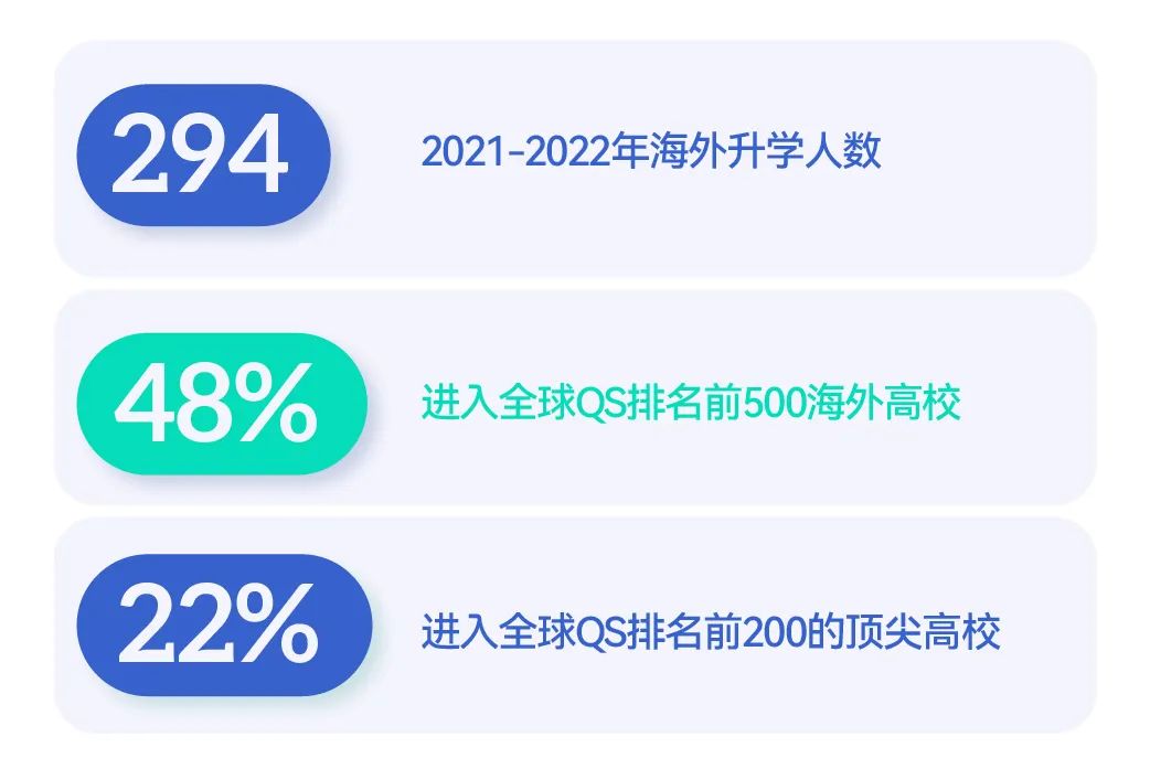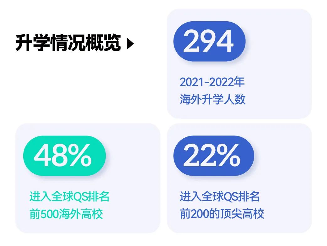 2021—2022学年,共有294名学生实现海外升学,进入全球QS排名前500海外高校的而学生人数占比近一半,为世界输送高质量国际化人才、助力学生前往世界高等院校深造,是欧亚“国际化”办学道路的重要体现之一。