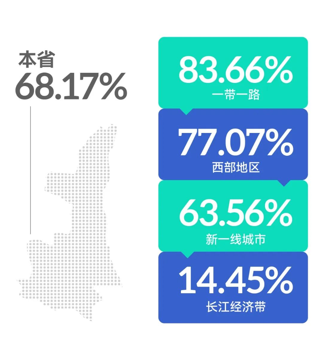 2021届毕业生主要就业于本省,在服务本地发展的同时,83.66%的学生服务于国家“一带一路”经济建设,在西部地区和新一线城市就业的毕业生比例均在六成以上。