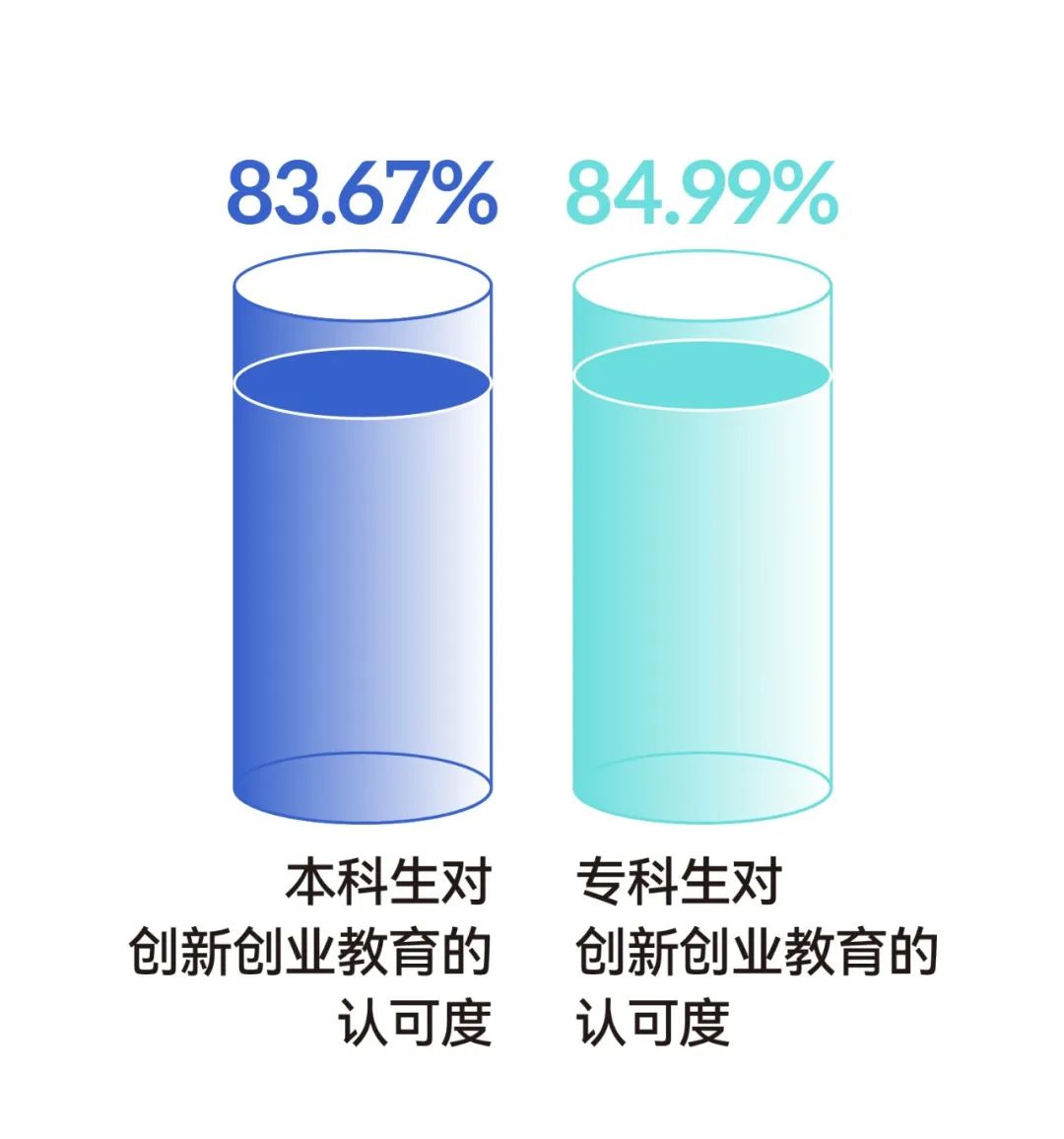 创新创业教育的开展对促进学生创造性发展具有重要作用。学校通过开设创新创业课程,鼓励学生参与创新创业大赛与实践活动,推动学生在商业战略、价值判断、跨界协同、交叉创新、辩证思维等层面能力的有效增长,近八成的学生认可此项教育,认为其对自我发展起到较好的助力作用。