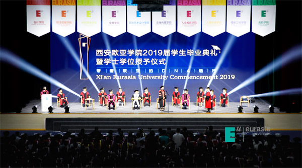 今年还有一个变化,在我和同事们的努力下,陕西省招生委员会接受了我们的研究建议,合并了二、三本录取批次。所以,你们是从所谓的“三本”入校、“二本”毕业。不远的将来,一、二本录取的批次也将合并。过几年,你们坐在家里就变成了“一本”。(笑声)其实,欧亚学院的教育志向远不在此,我们更关心的是全社会的教育公平,我们正在形成应用型大学发展的“欧亚模式”,这个模式的出发点很朴素:“以学生为中心,不断提高学生的学习质量和生活质量。”