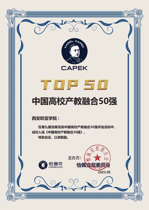 恰佩克奖(The Capek Prize)始创于2014年,旨在奖励在机器人领域作出贡献的组织和个人,致力于做机器人行业发展的见证者,打造机器人行业的“诺贝尔”。目前,恰佩克奖是我国机器人领域内最重要、含金量最高的奖项,在行业内极富影响力和公信力。“中国高校产教融合50强”是本届恰佩克奖首次为在机器人行业作出重要贡献的高校组织设立的奖项。