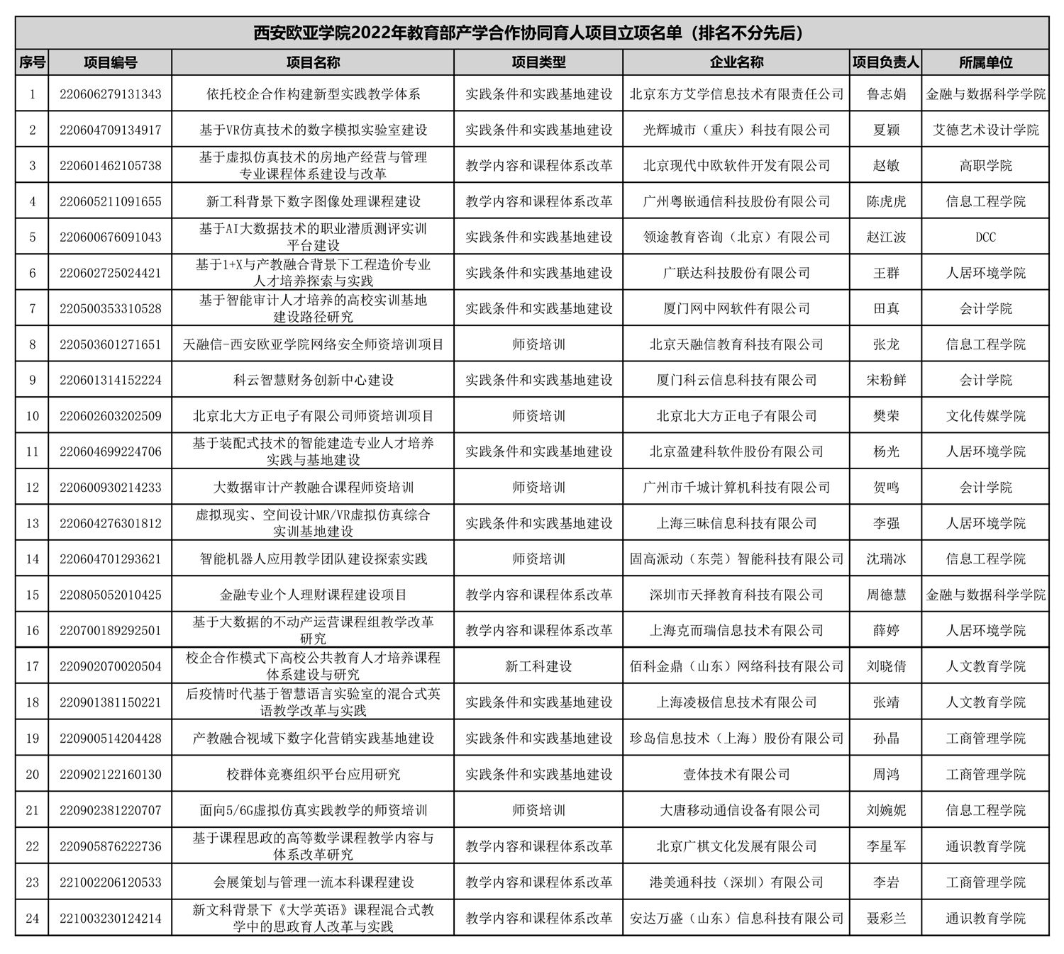近日,教育部高等教育司公布了2022年产学合作协同育人项目立项名单,beat36524个项目获批立项。自2016年申报项目以来,欧亚累计获批教育部产学合作协同育人项目93项。